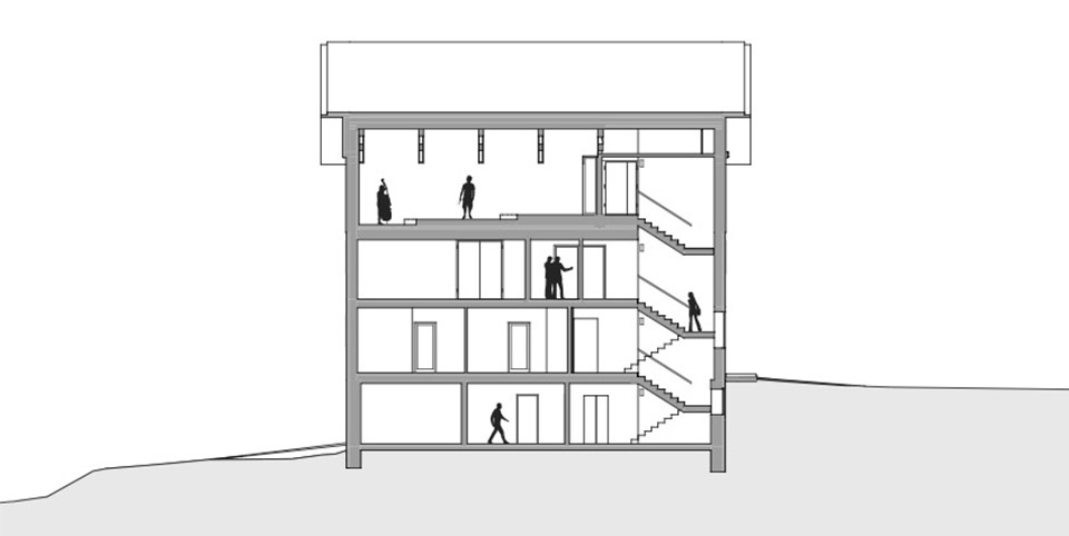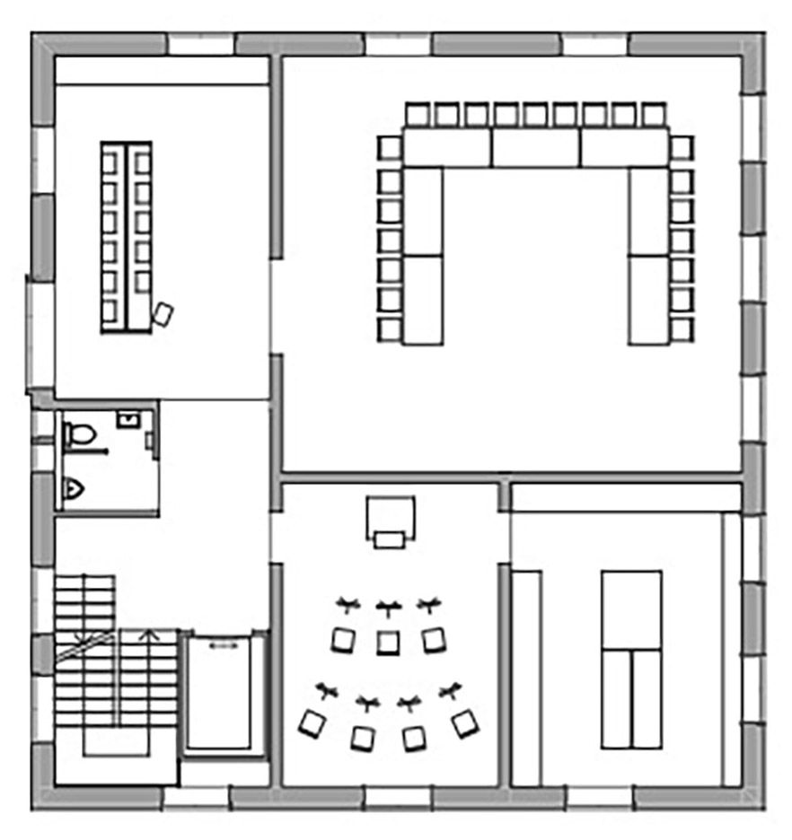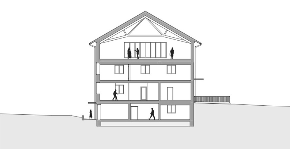 The renovation of the existing municipal office includes barrier-free access across all floors, as well as an enlargement of the meeting room to accommodate the required number of members of the municipal council. In front of the meeting room and the music room, an anteroom will be created for the various users of the building to meet and exchange ideas.