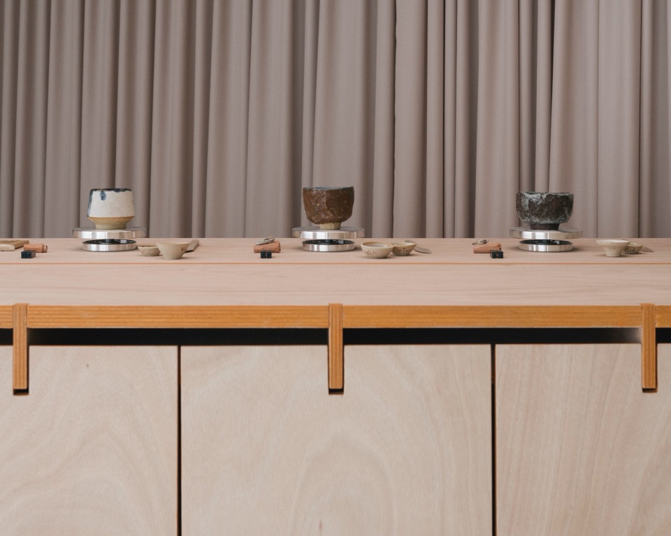 然而,并非所有功能都被直接表露。为了保持叙事的一致性,塑形工具被收纳于金属托板上,并由帷幕隐藏,如同舞台布景一般,只有在工作坊活动中需要时才被揭示。