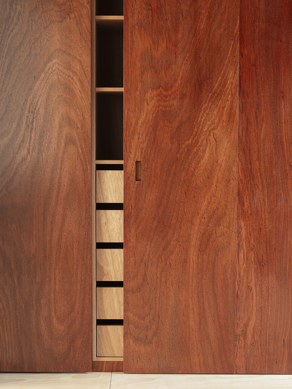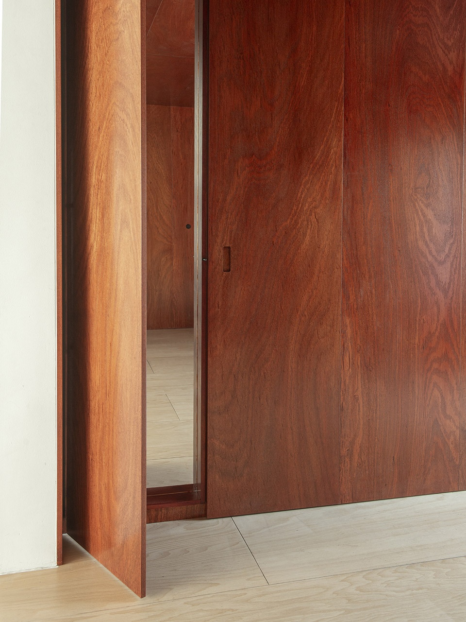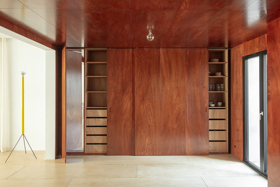 比利时项目业主的主要诉求是:希望在公寓的这个房间里增加额外的储物空间。此外,这个房间当时看起来尚未完成。因此,设计团队选择用温暖的木饰面来包覆整个空间,旨在营造一个舒适而私密的环境。