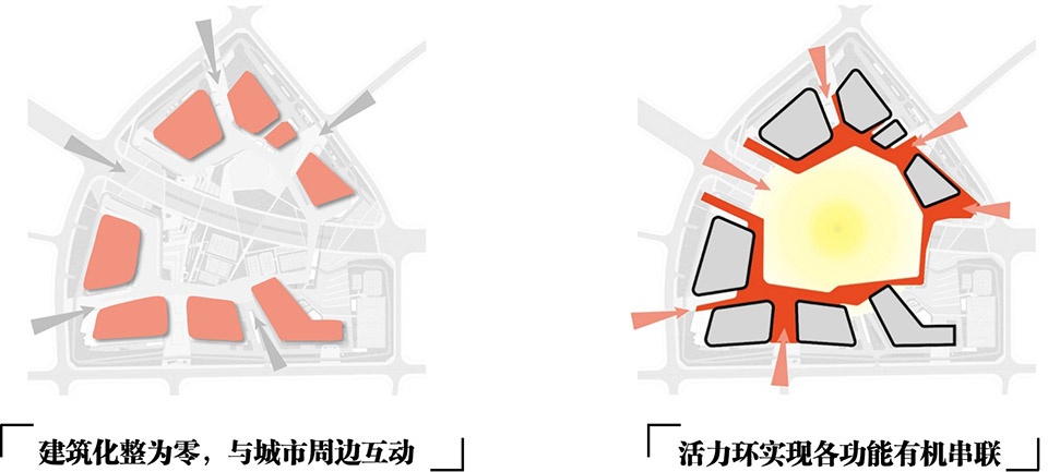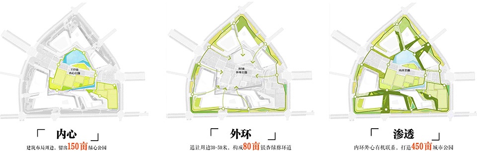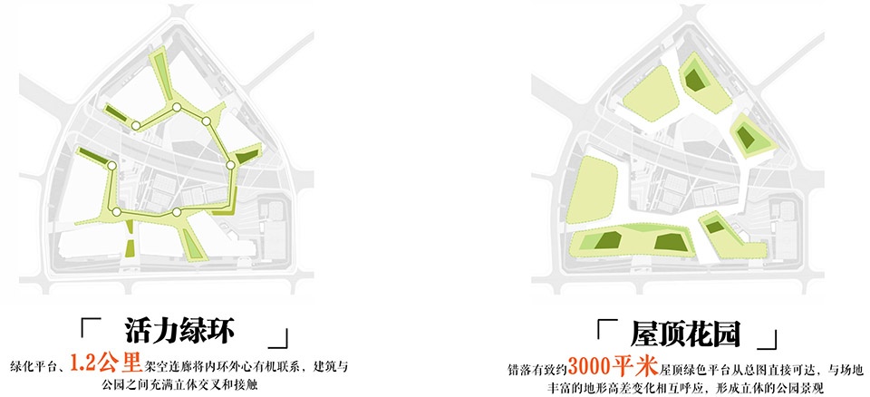 ▼“内心外环”双层公园结构,Double-layer park structure with an inner ring and outer ring