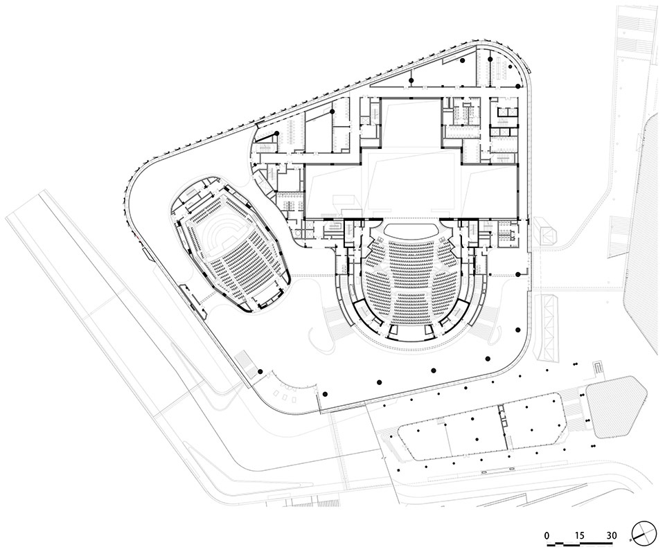 ▼大剧院二层平面,Second floor plan of the Grand Theatre
