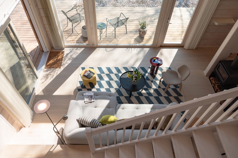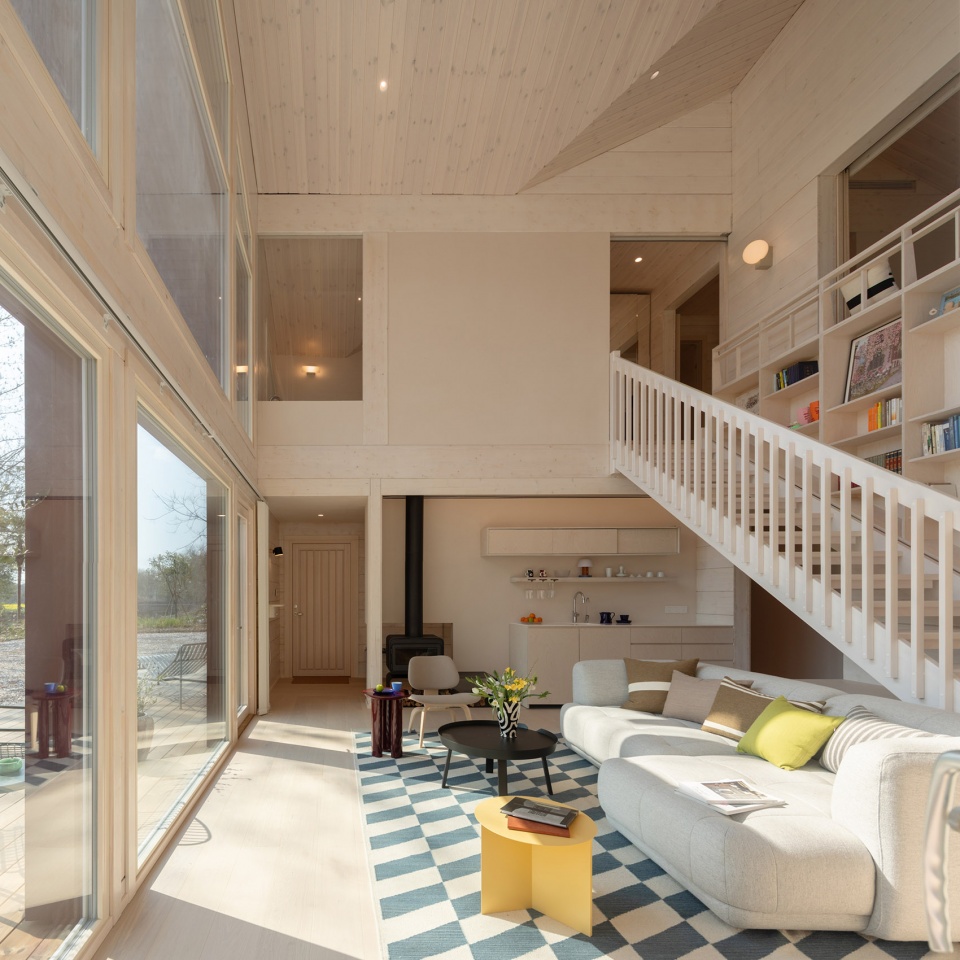 Timber House Materials: Honka Non-settling Crosswise Laminated Pine Log, AkzoNobel Exterior Wood Paint, Lasita Glass Doors and Windows, Lappiporras Solid Pine Stairs, Kahrs Three-Layer Engineered Wood Flooring, Sveza Birch Plywood, Woca Wood Oil, Ceramiche Caesar Tiles, Gedeng WPC Flooring, Silent GlissCurtain Tracks