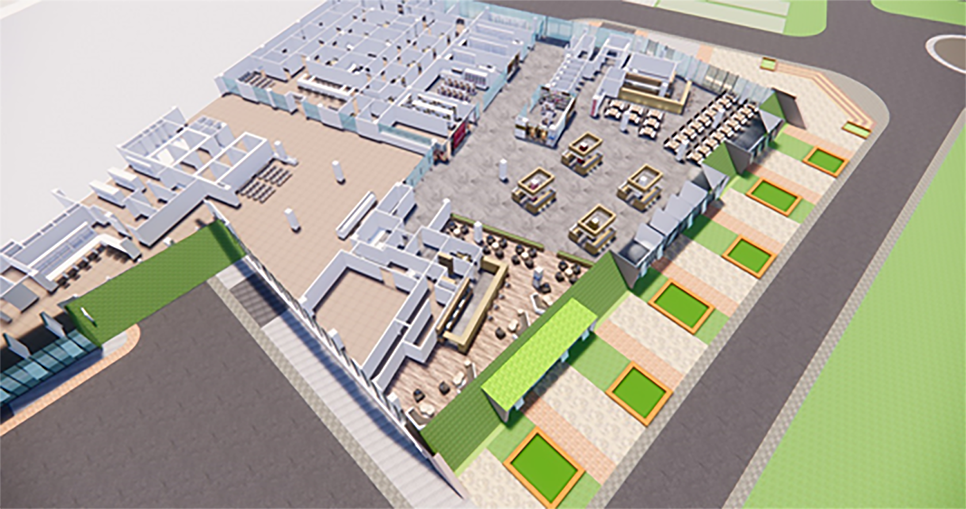 在国外,特别是参观一些发达国家的医院,我们常常会看到医院在满足医疗的同时,还设有各式各样的商业设施,这些设施缓解了病人就诊时的压抑感,生活化的场景带给患者家一样的温暖。本项目设有约3000m²的商业服务设施,位于首层的一端,对内与医疗主街相通,对外设有直接对外的出入口,内设餐饮、咖啡、商店、ATM机、小型商品售卖等设施,满足患者生活需要。另外,由于当地实行医药分离政策,商业区内设有零售药店(Pharmacy),为患者提供购药选择。近些年来,随着时代的发展,我国在医院建设中也越来越重视商业设施的引入,在给患者带来方便的同时,增加了医院的人文体验。