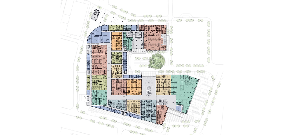 因地域经济文化、医疗传统、施工方法等诸多差异,该医院的设计理念与国内医院设计的方法不尽相同,总体布局及建筑设计也有非常鲜明的特色,结合具体内容,下文试做逐一阐述。