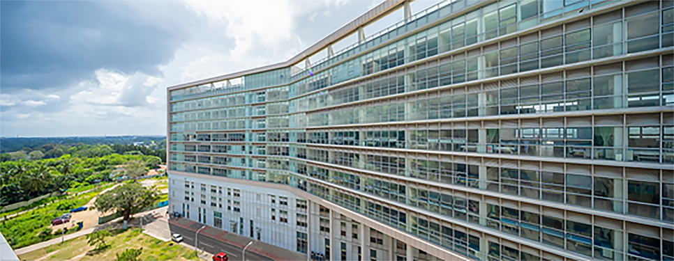 本项目位于斯里兰卡西部省,毗邻首都科伦坡,总用地面积为195亩,周边均为低矮的私家住宅,仅用地东侧500米外有一条国道,用地与国道之间通过一条道路相连。该项目功能比较复杂,包含了医院、教学、科研、宿舍、餐厅、停车等各类用房,总建筑面积12.3万m²,其中医院建筑面积为7.8万m²,为院区内单体面积最大的建筑,高十层,钢筋混凝土框架剪力墙结构,设计总床位为704张。
