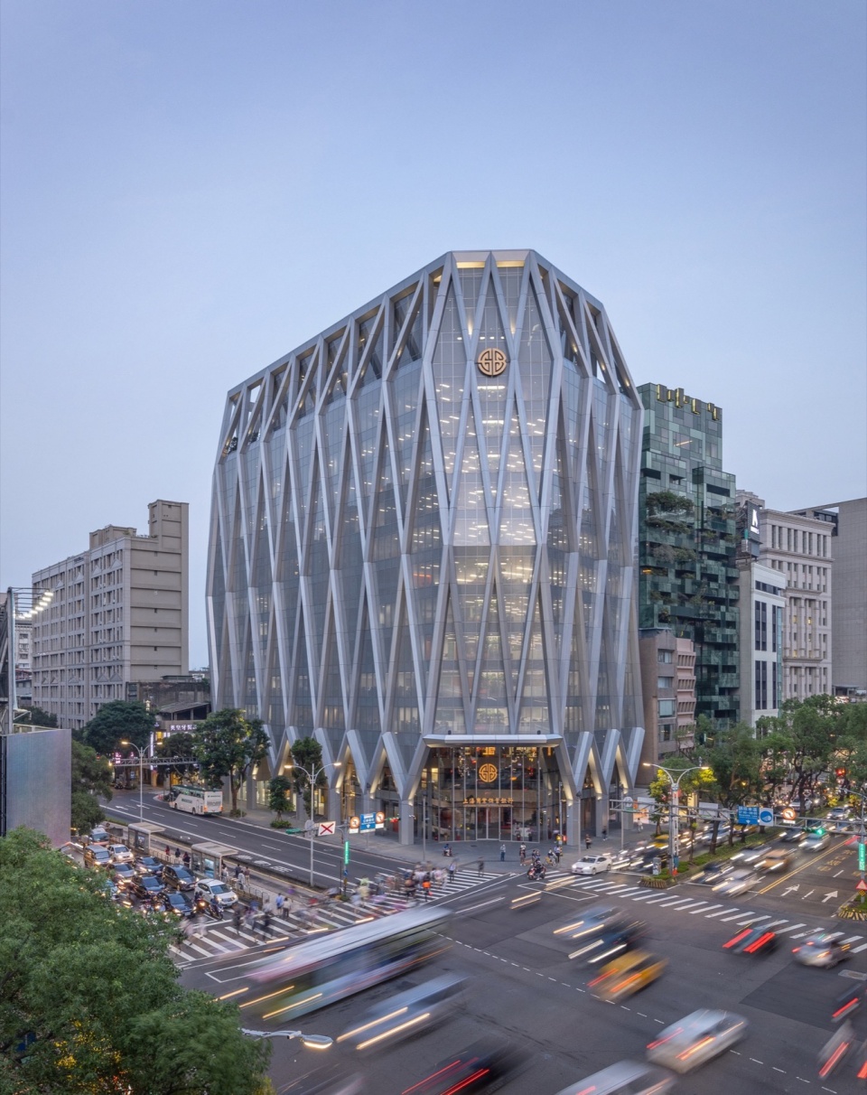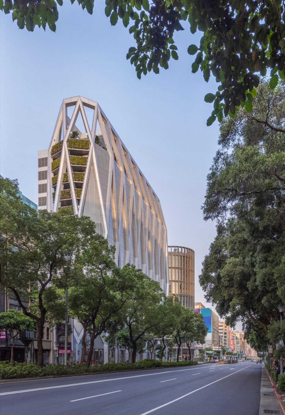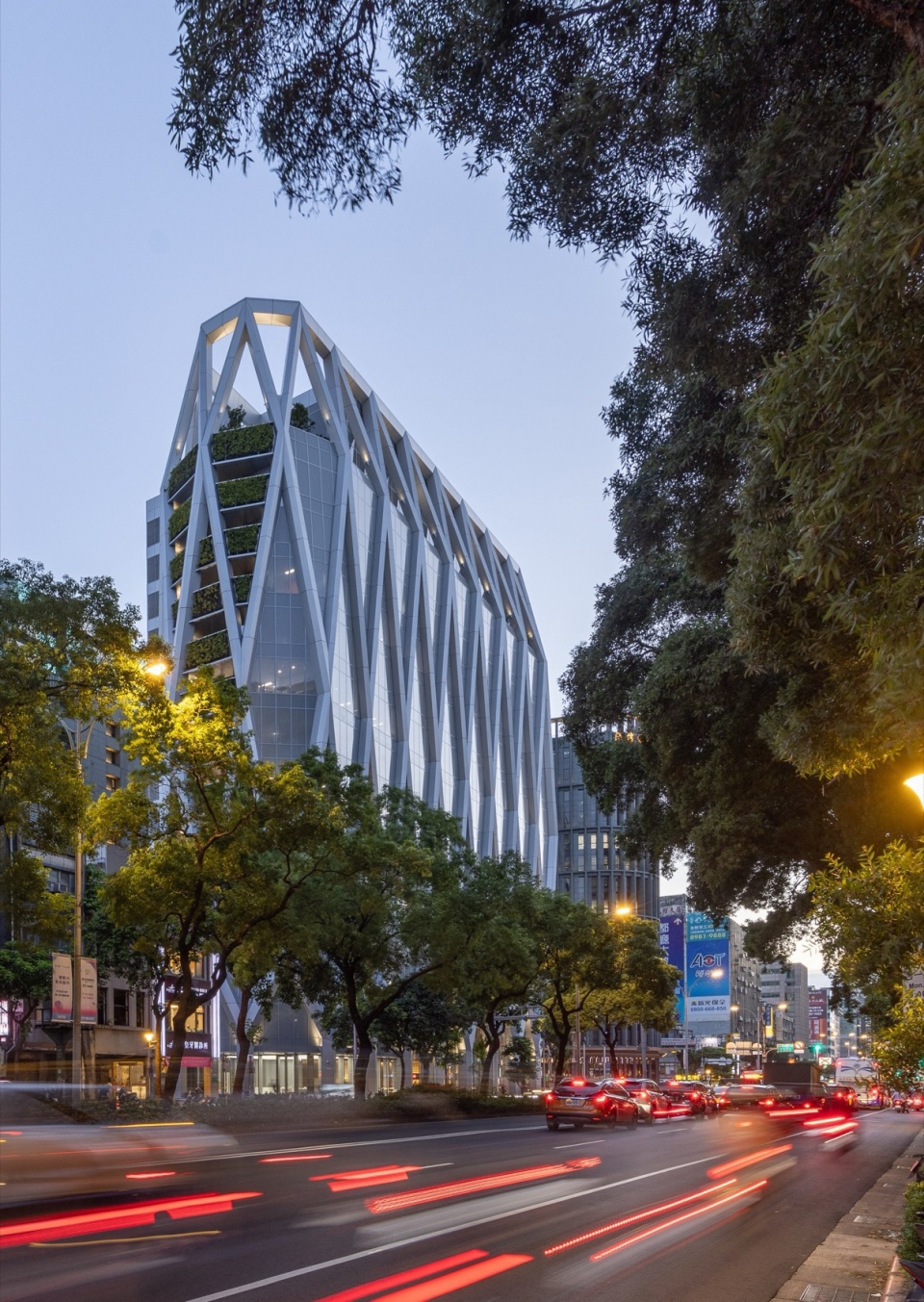 ▼从民权东路看建筑外观上简洁的钻石型几何语汇,Diamond-Inspired Façade Geometry viewed from Minquan East Road