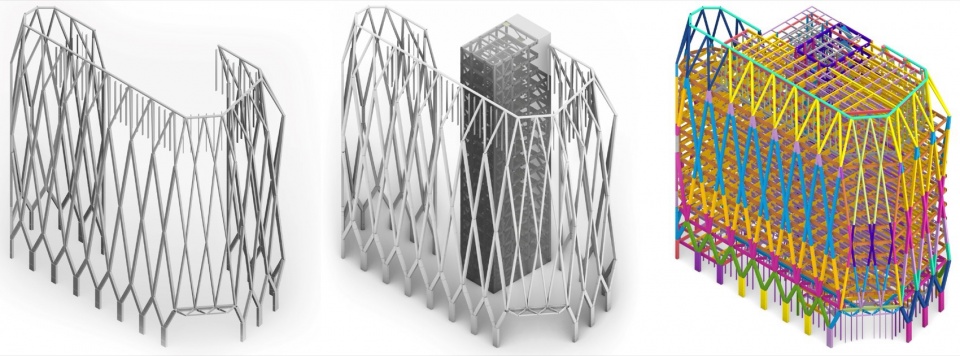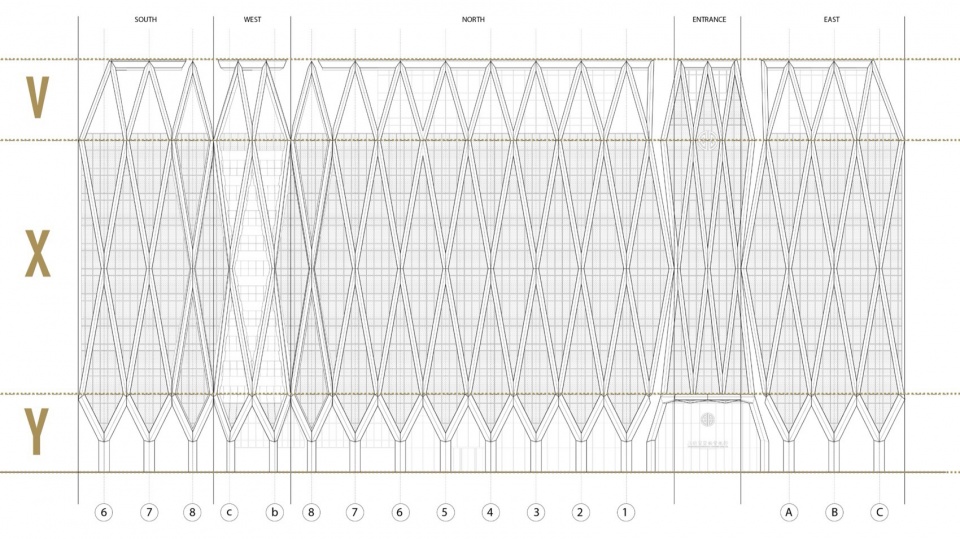 2.1 斜肋构架复刻钻石语汇——结构即外观 Diagonal Rib Framework Echoes the Language of Diamonds — Structure as Facade