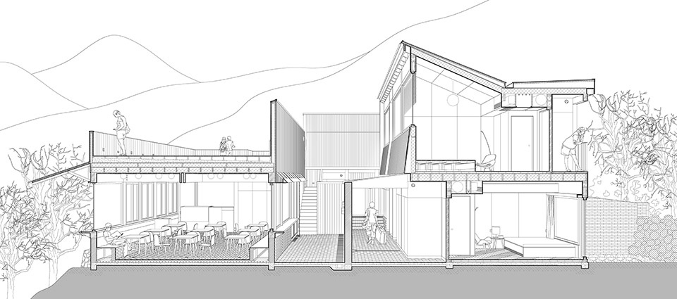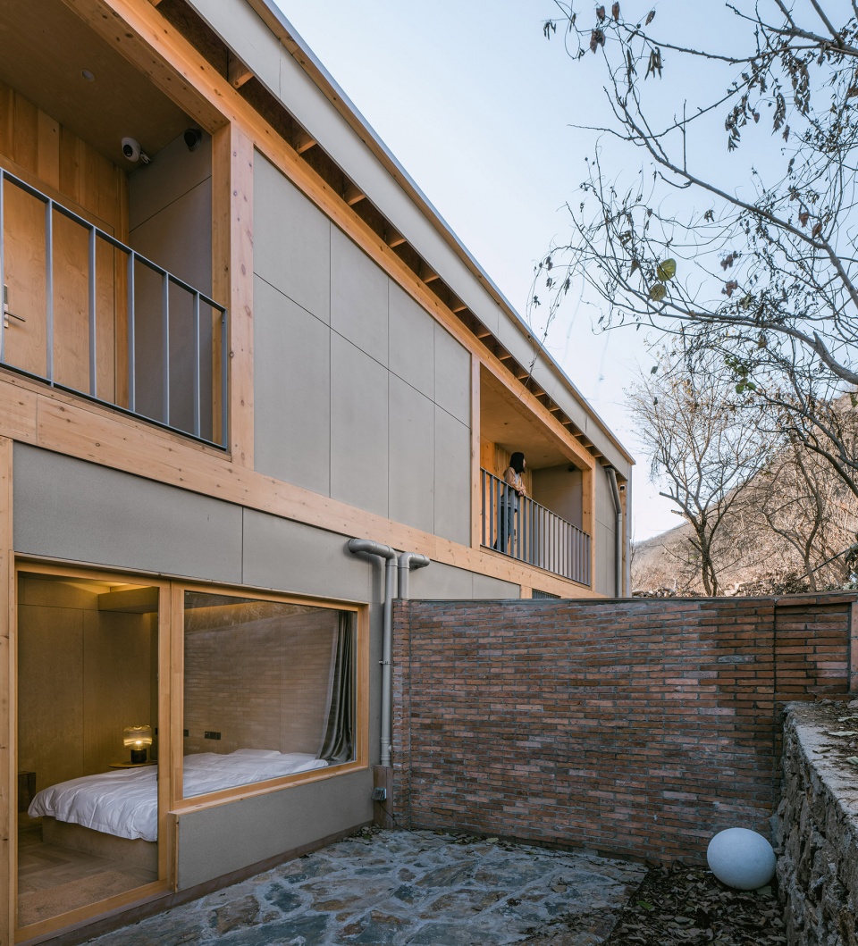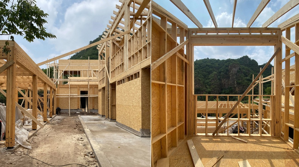 Due to the constraints posed by the mountainous terrain, the entire complex was built with wood, combining the use of timber frames and wooden shear walls within relatively compact building size.