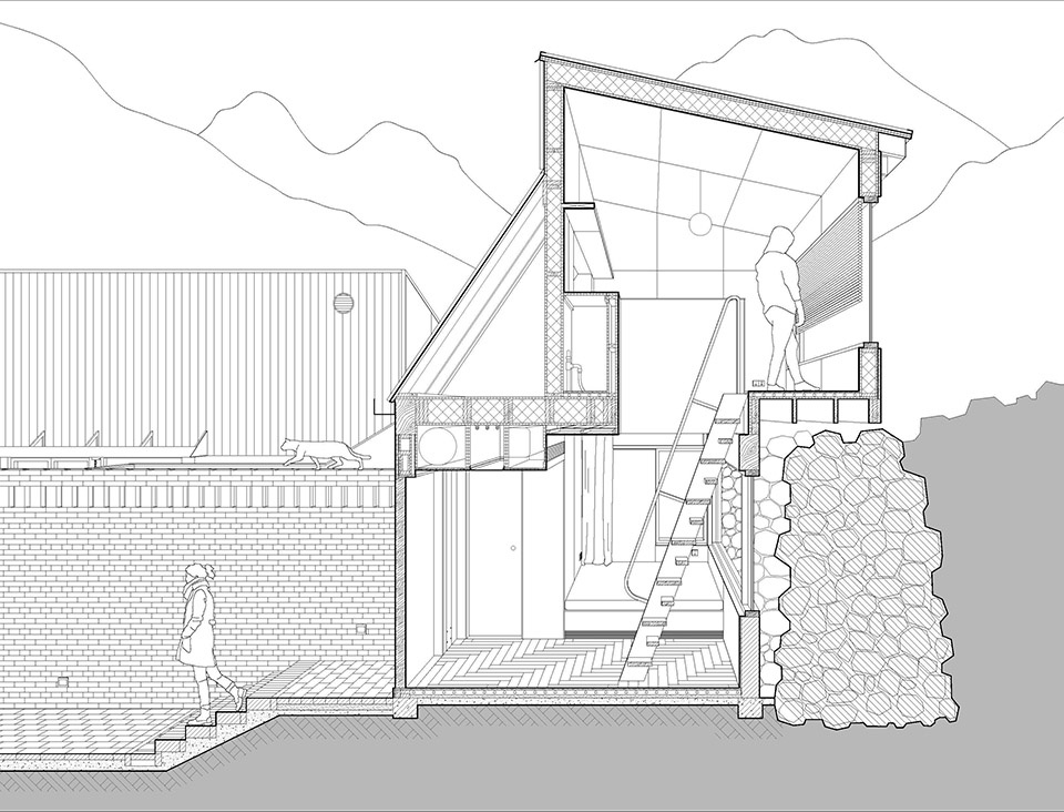 某种程度上讲,这些工棚的建造颇为随意,譬如屋面,只是顺应雨雪来向,选择了最方便的排水坡度;对于材料也因陋就简,利用其他工程的余料便拼凑出了立面。但这些权宜却获得了意外的轻盈与简约,塑造出一些山地建筑的自由特质。这里有很多东西值得学习。因此整个工程我们更愿称其为“改建”。