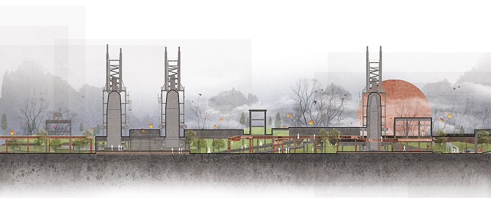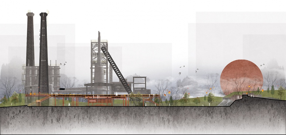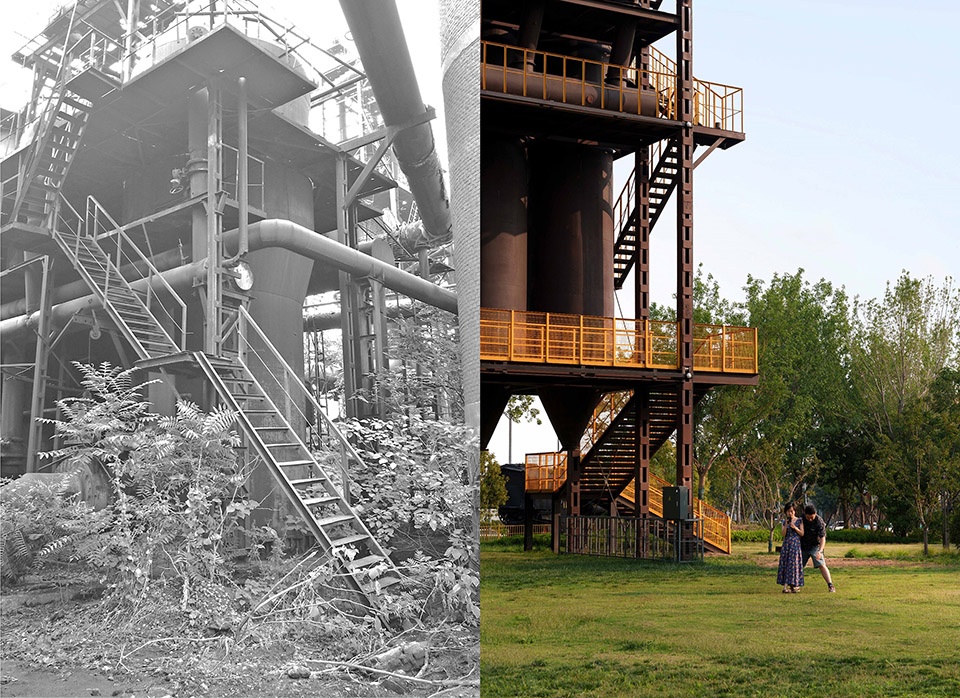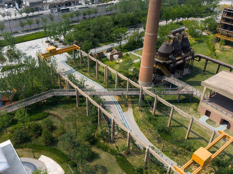Through extensive consultation, the industrial heritage section focused on the critical production processes. By retaining typical production equipment required throughout the entire process, including blast furnaces, hot blast furnaces, bag filters, and silos, as core elements of the exhibition, the design leverages this core industrial heritage as the commanding heights of the park’s overall spatial landscape. The core area of heritage also served as the starting point for shaping the spirit of the place and shaping the park’s overall skyline, which echoes the surrounding city skyline in the distance.