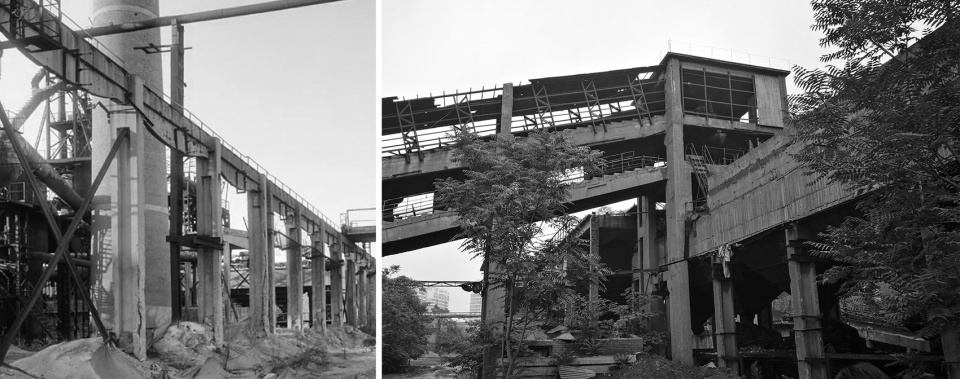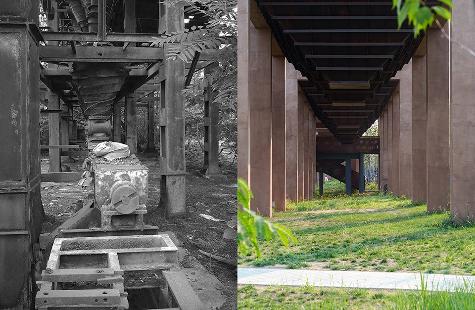 ▼保留构筑物及标志性鱼腹柱廊改造前,the iconic Fish Belly Colonnade and the preservation of the structure before renovation