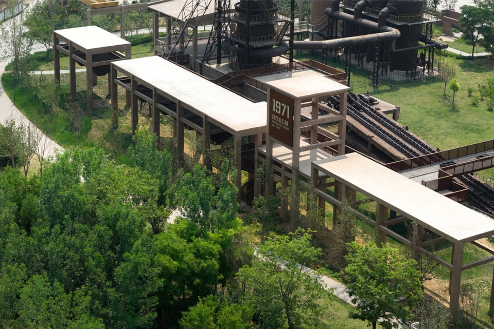 在工业遗迹的高炉等设备成为全园引人注目的焦点和大尺度空间背景的同时,项目新设的节点空间则为游客提供了细致的文化与功能空间,将人们的视线收回专注于眼前。以厂区历史和工业文化为主题的节点设计坐落于园区多处,提供了文化纪念空间。设计以舒适的尺度,精致的细节,自然的风貌,提供了极具品质的公共空间,服务百姓日常生活。
