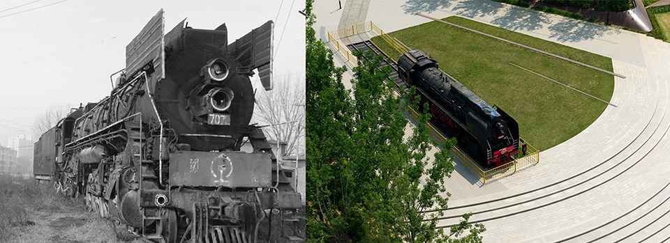 ▼标志性火车头遗迹元素改造前后对比,Comparison of the iconic locomotive relic elements before and after the renovation
