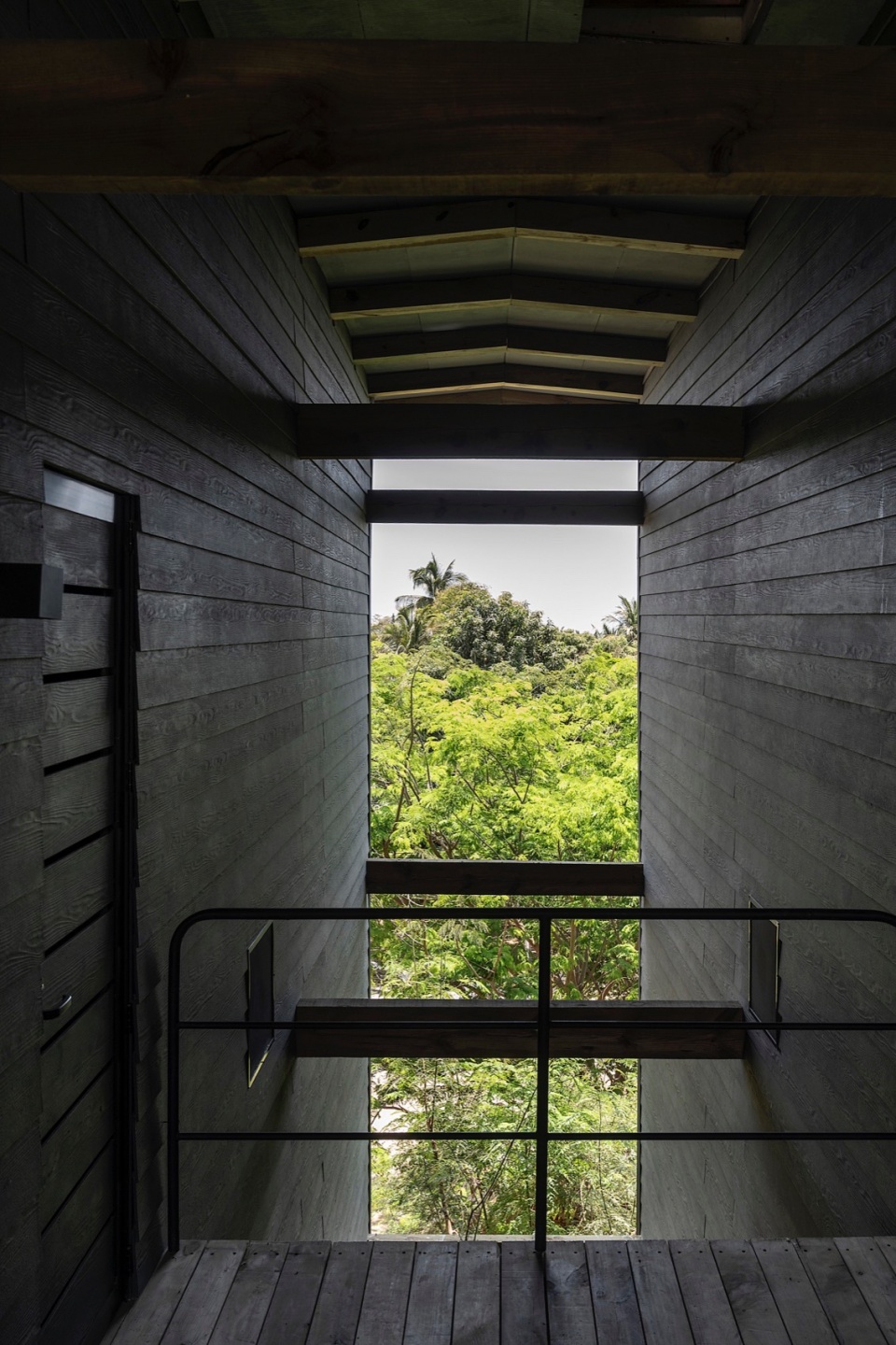 可持续发展理念是本项目的一大核心:KINEKI La Punta配备了雨水收集系统、水处理装置,以及大量本地植被景观。其黑色木纹质感纤维水泥外立面,致敬日本“烧杉板(Shou Sugi Ban)”工艺,呈现出强烈且恒久的美学风格。