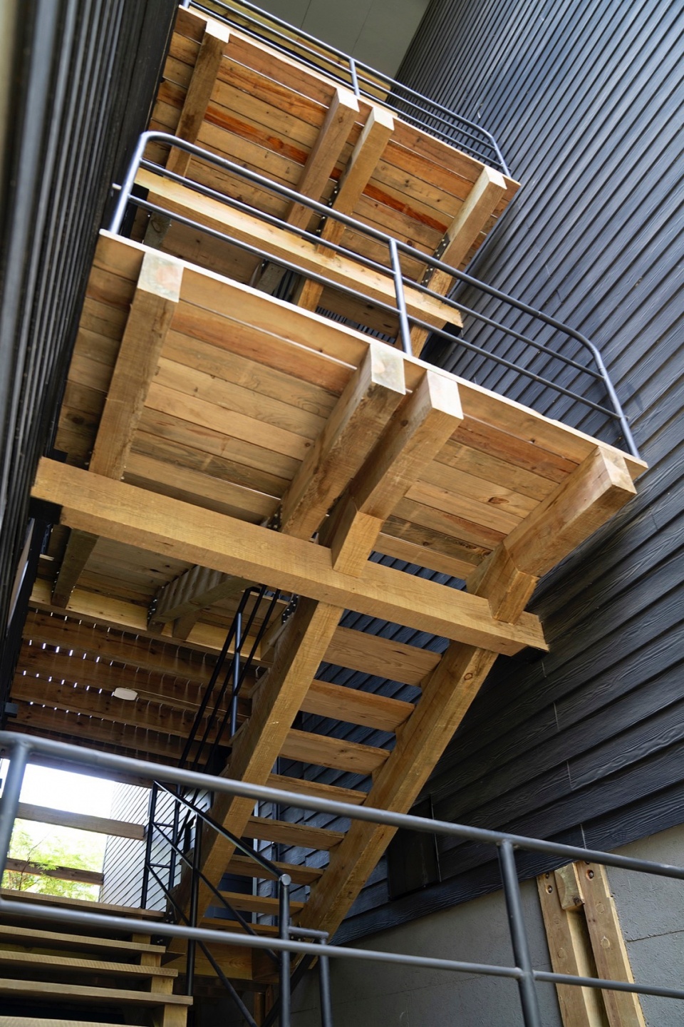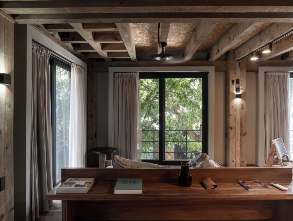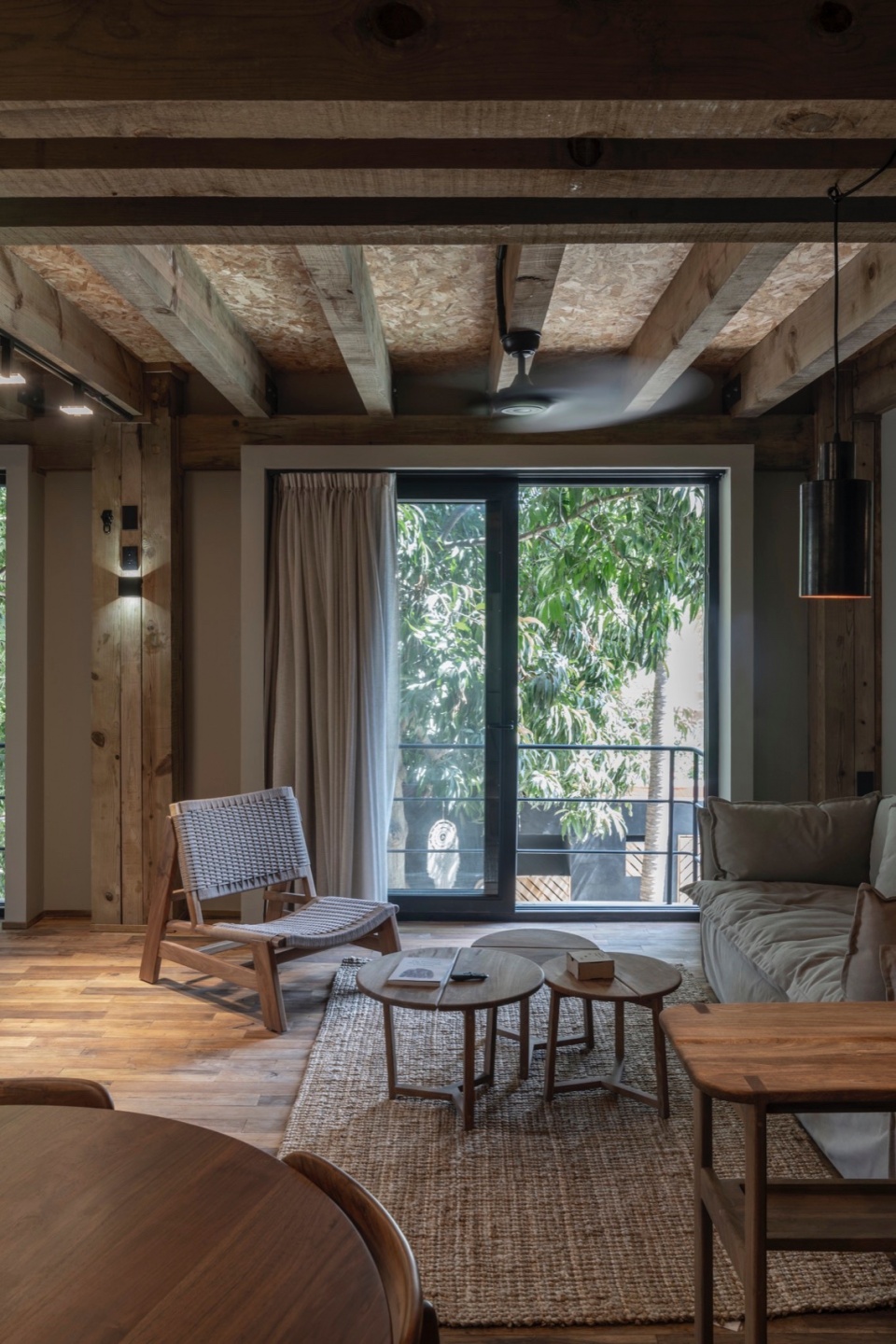项目在建筑材料的选择上也颇具创新性:建筑结构采用经处理的实心松木,墙体与楼板使用聚氨酯芯材的纤维水泥板,兼顾耐久性、热效能与声学舒适性。十字形布局有效避免套房之间的共墙设计,提升私密性和自然通风,同时优化了空间使用。