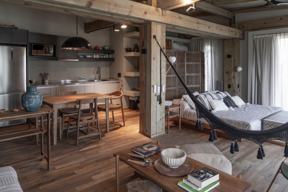 A hallmark of the project is its deep commitment to sustainability. KINEKI La Punta integrates rainwater harvesting systems, a water treatment plant, and extensive native landscaping. Its façade, clad in black fiber cement with a wood grain texture, pays homage to the Japanese Shou Sugi Ban technique, providing a striking, timeless aesthetic.