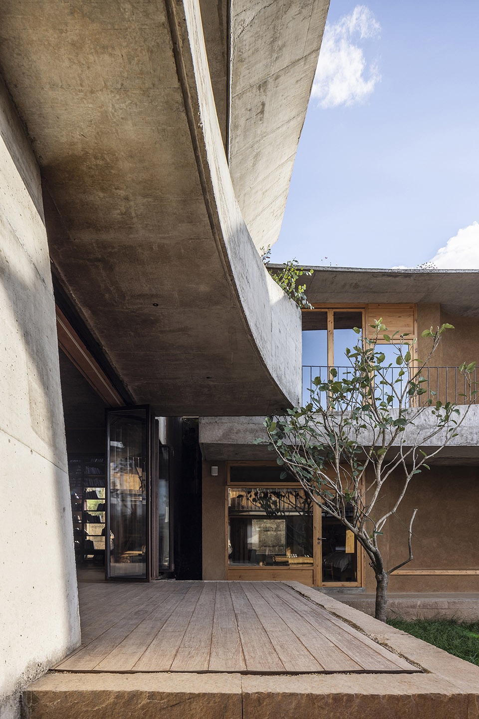 From the courtyard, to provide diverse views outward, the second-floor independent guest rooms in the west and north zones were kept relatively short. The design also sought to create a unique tension between the rooms and the distant mountains and the magnificent sky and clouds. The ground elevations and room heights of each zone and floor are distinct and interconnected, creating a constant sense of movement and a constant flow of perspectives.