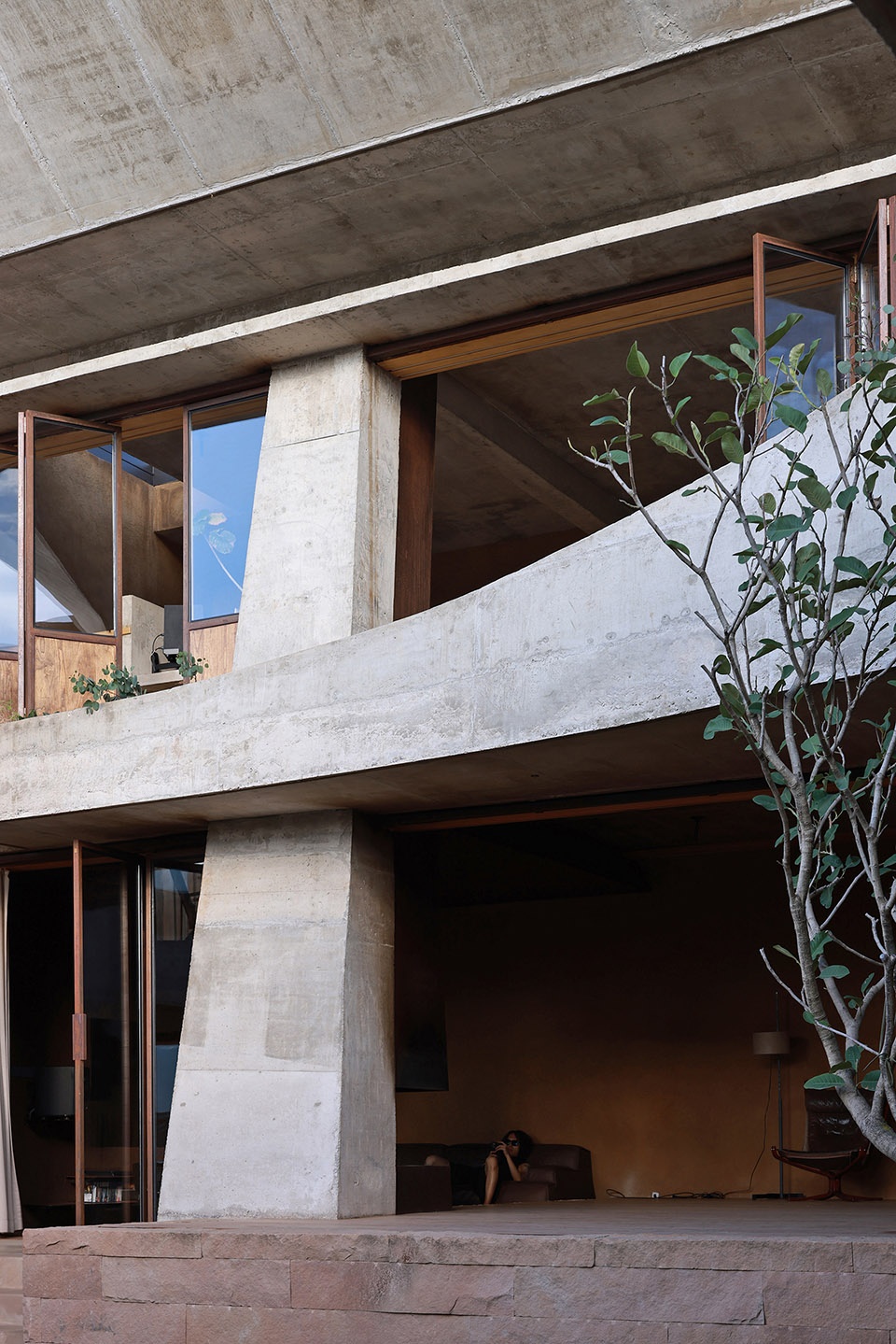 ▼从西区露台看向正房通高柱体,View of the main house’s high columns from the west terrace