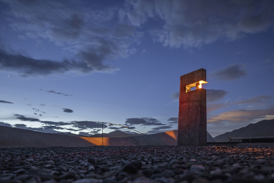 At the lowest point of the curved west parapet, facing the setting sun, a series of lightweight stainless steel linear fixtures illuminate the sun’s final rays towards Kui Pavilion. Details like the chimney’s eternal lamp and the smoky brown gravel on the “shipboard” welcome the majestic and subtle clouds, haze, sunrise and sunset.