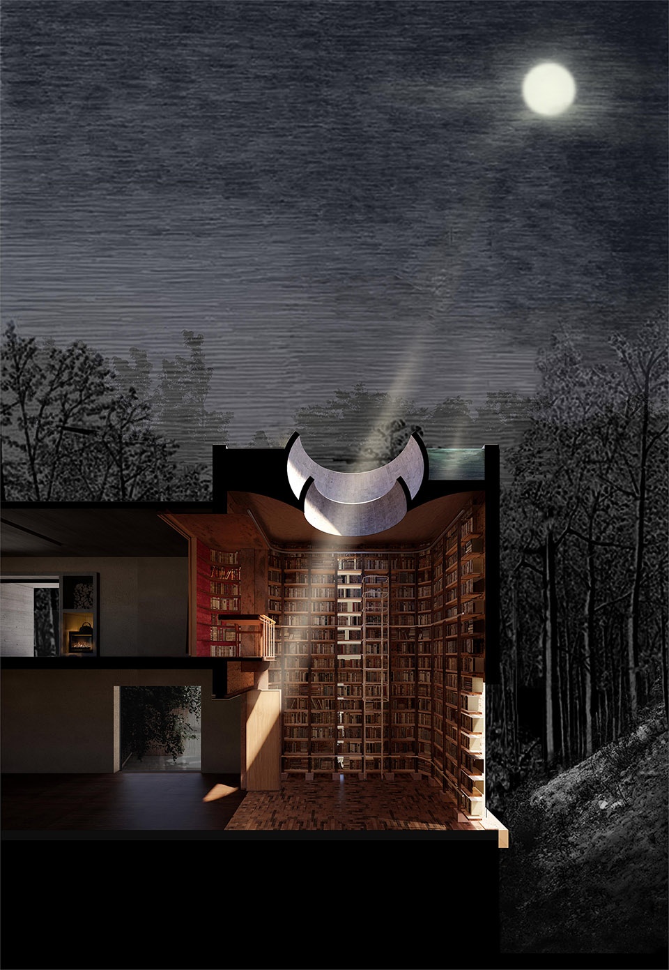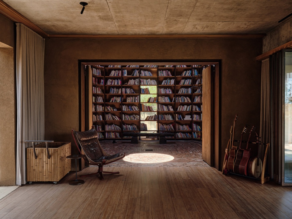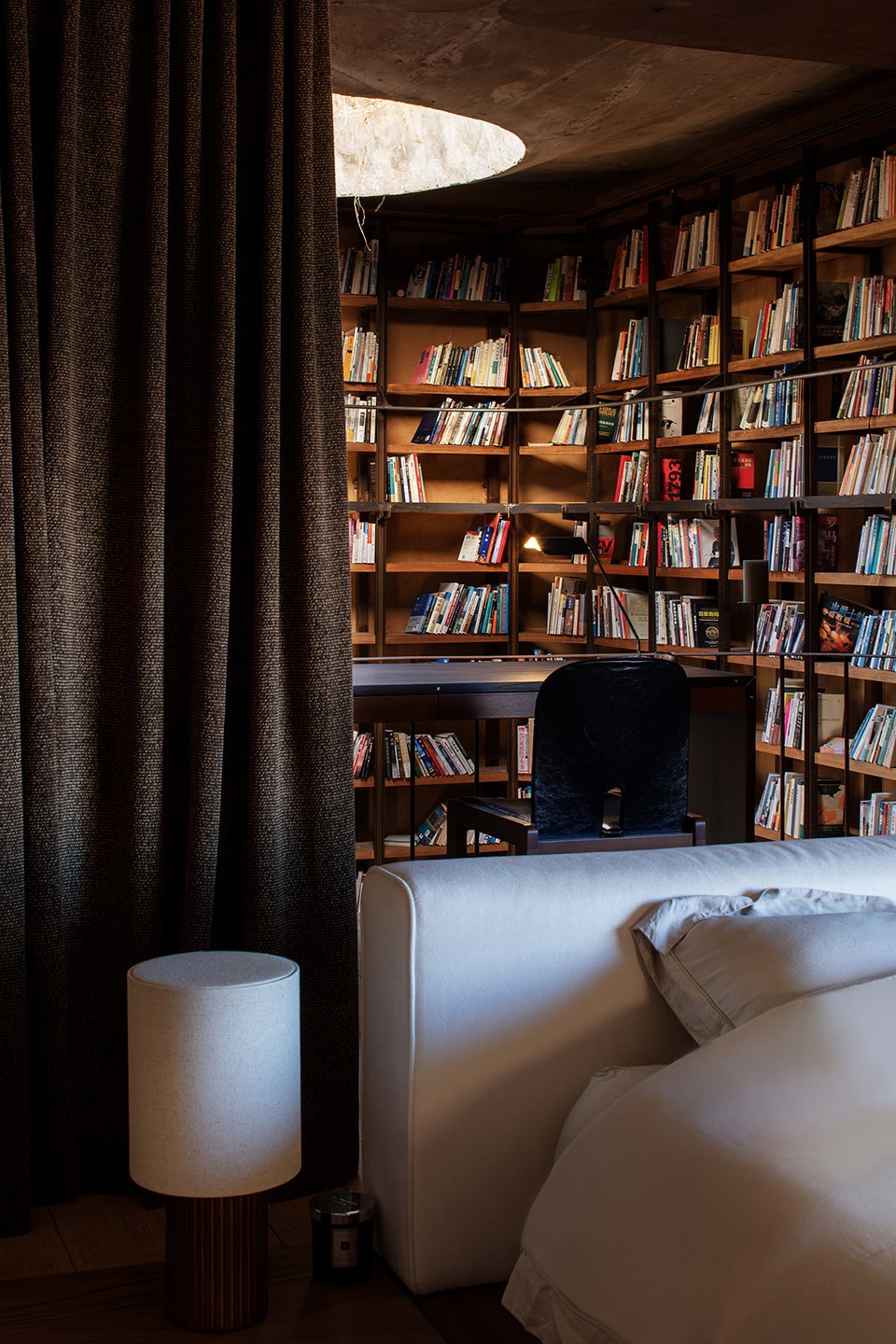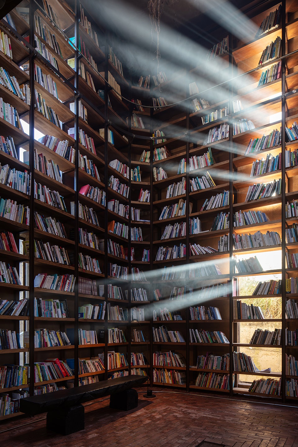起初的空塔是一个可以观察天空云雨的空间,让独处或者小型聚会更有想象力,对乐器也特别友好。中途因为有上万本书的缘分,空塔恰如其分成为6米多通高的书塔。