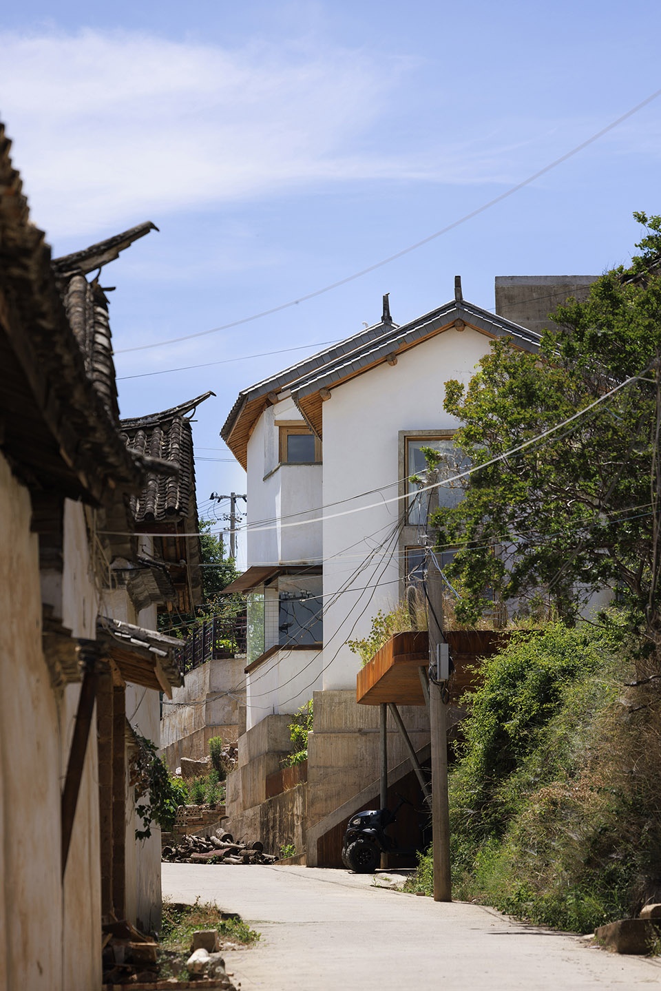 No. 8 Dongnan Village is located two kilometers southeast of the ancient town’s central square. Our first coffee in the square captivated us, captivated by the Kuige Opera Stage, a flock of mythical birds that summon heaven and earth, ready to take flight at a moment’s notice. Its dynamic, exaggerated eaves echo the public celebration of “unity between man and god,” making it truly remarkable even on a normal day. Even after leaving Shaxi, it lingers in our hearts as the “Golden Pavilion,” an unforgettable image. I longed to create a modern building that complemented the ancient stage. The entire Dali Prefecture region is a plateau of abundant sunshine. Prolonged exposure to the sun is unbearable, while the coolness of shade is incredibly beneficial. Creating eaves that resemble birds or other creatures is both a climatic necessity and a manifestation of a latent need. Therefore, we designed the first-floor eaves (on the second-floor platform, second-floor corridor handrails, and master bedroom balcony handrails) and the second-floor eaves (on the roof platform parapet) with three-dimensional curved surfaces. Like birds perched above the house, they provide shelter and shade.