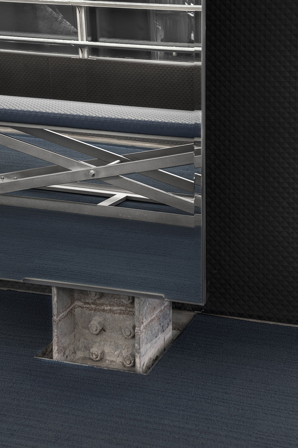 首层试衣间采用镜面与木色饰面材质组合,将工业的冷硬与潮流温度融合,实现空间节奏的转换。导光板营造柔和氛围,定制镜面拓展空间层次,让试衣成为自我探索的潮流仪式。蓝色地毯与品牌主色调形成视觉呼应,赋予精致的试衣体验。