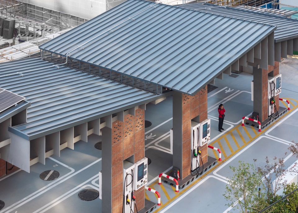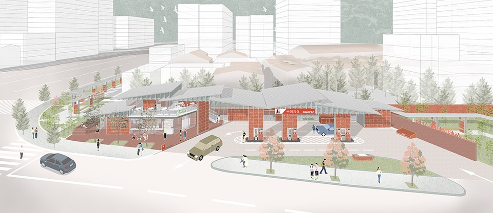 This project aims to actively eliminate the “NIMBY effect” and integrate positively into the neighborhood and the city. It adopts a design strategy of “urban connectivity + cultural interpretation + functional composite,” striving to create an urban “pit stop for both humans and vehicles” that combines “service facilities + exhibition corridors + lane memory.” The design seamlessly merges functions such as the gas station and urban rest stops. The use of modern structural interpretations of pitched roofs and red-brick materials pays homage to local culture, while a corner café integrates urban life. A public corridor created by stepping back the building volume enhances urban connectivity, forming a distinctive and multi-functional “urban infrastructure complex.”