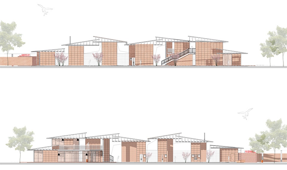 文化演绎:墙与坡顶的钢构红砖单元