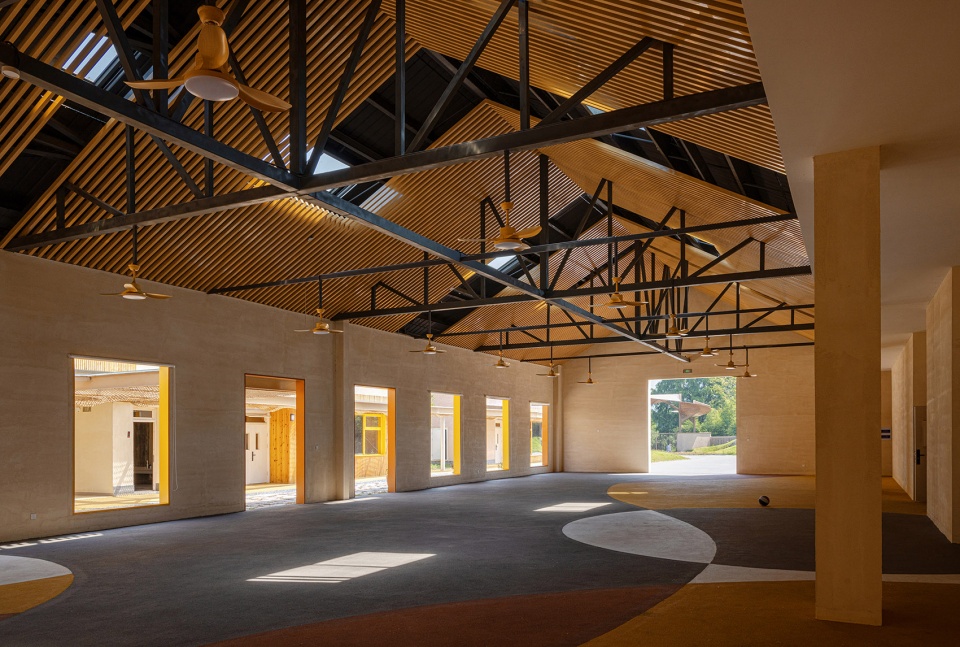 The architecture emphasizes locality and participatory construction in both material selection and building methods. We used locally sourced soils of varying colors, applying traditional plastering techniques for the interior and exterior walls. Bamboo weaving components and wooden structures were crafted collaboratively by local artisans and young volunteer builders.