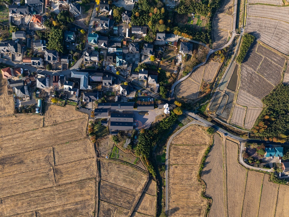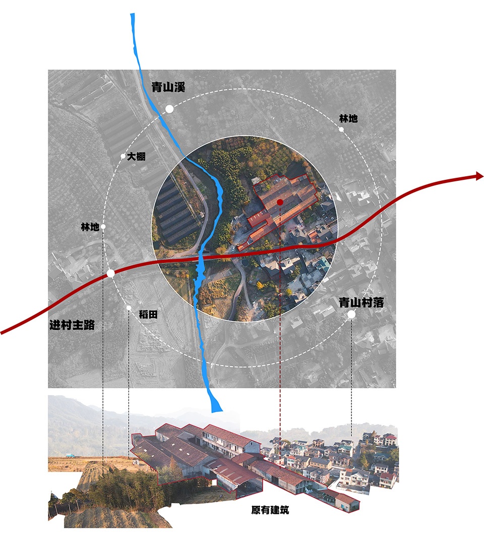 项目所在地依山傍田,溪流环绕,是典型的江南乡土场景。费孝通在《乡土中国》中提到,传统社会中的“熟人社会”、“差序格局”和“礼治秩序”构成了乡土文明的基本面貌。如今,随着现代化的推进,许多乡村生活方式逐渐远离我们的日常。然而,土地不仅是乡村的符号,也是民族文化的根基。如何在现代教育中处理乡土与现代的关系,成为本项目的重要思考。原村小虽然废弃多年,但其空间肌理、村民记忆和情感仍在,成为设计出发的基础。