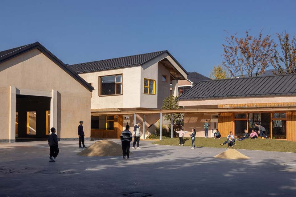 ▼融入乡村生活日常的校园,稻谷堆成为校园的景观,A Campus Integrated into Daily Rural Life