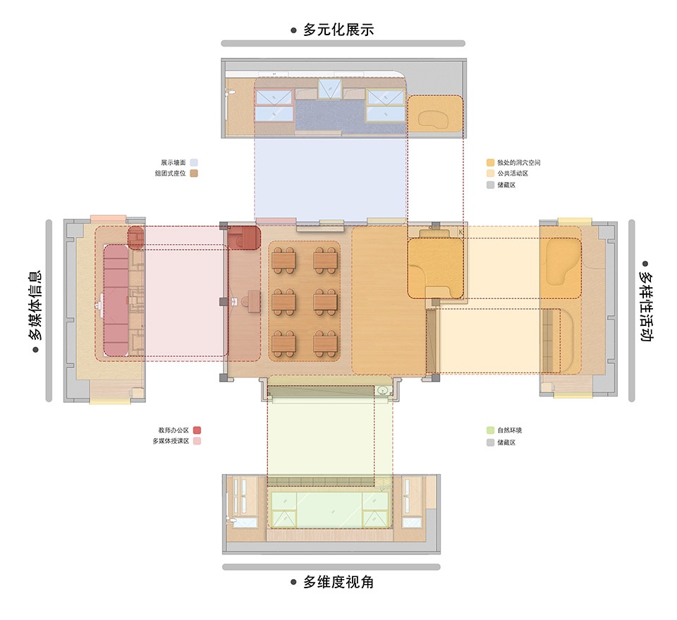 ▼多维教学空间布局,Multi-Dimensional Classroom Layout