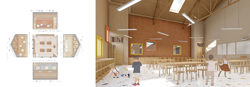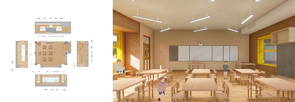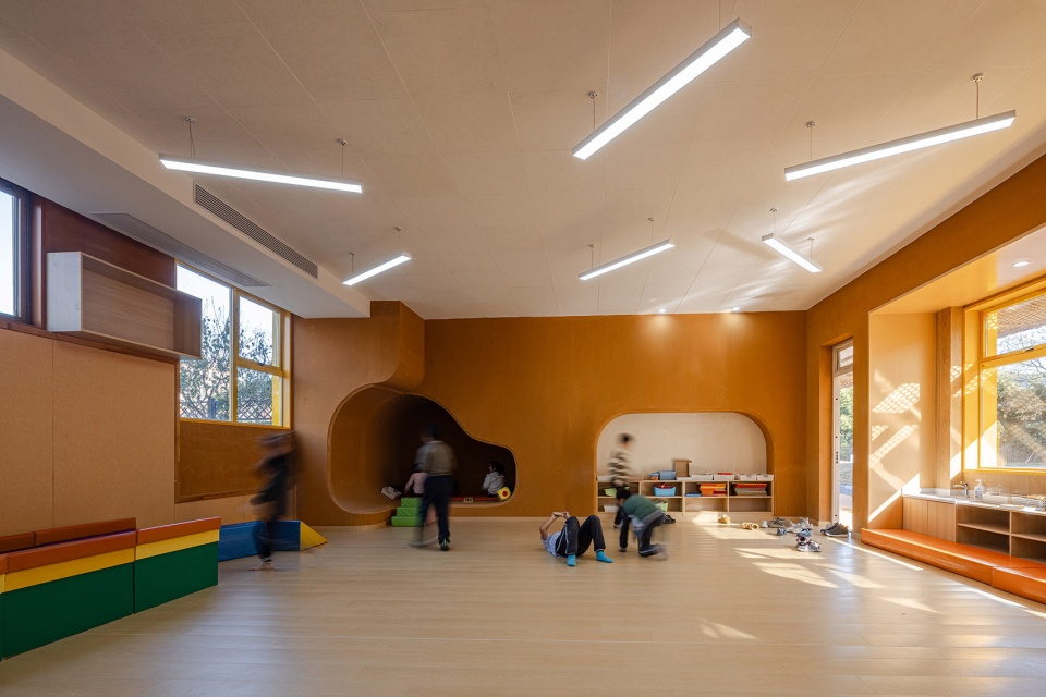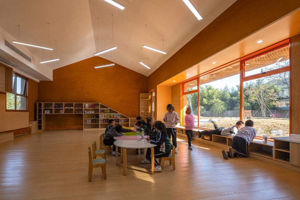 The design of Qingshan Schoolhouse grew out of this very question. It moves away from conventional lecture-based layouts and instead adopts flexible group spaces, multi-dimensional interactive interfaces, and modular arrangements. These elements allow students to shift between learning modes freely, depending on context. From the early stages, the project was developed in close collaboration with educational teams in Hangzhou, working together to create spatial strategies rooted in children’s cognitive development.