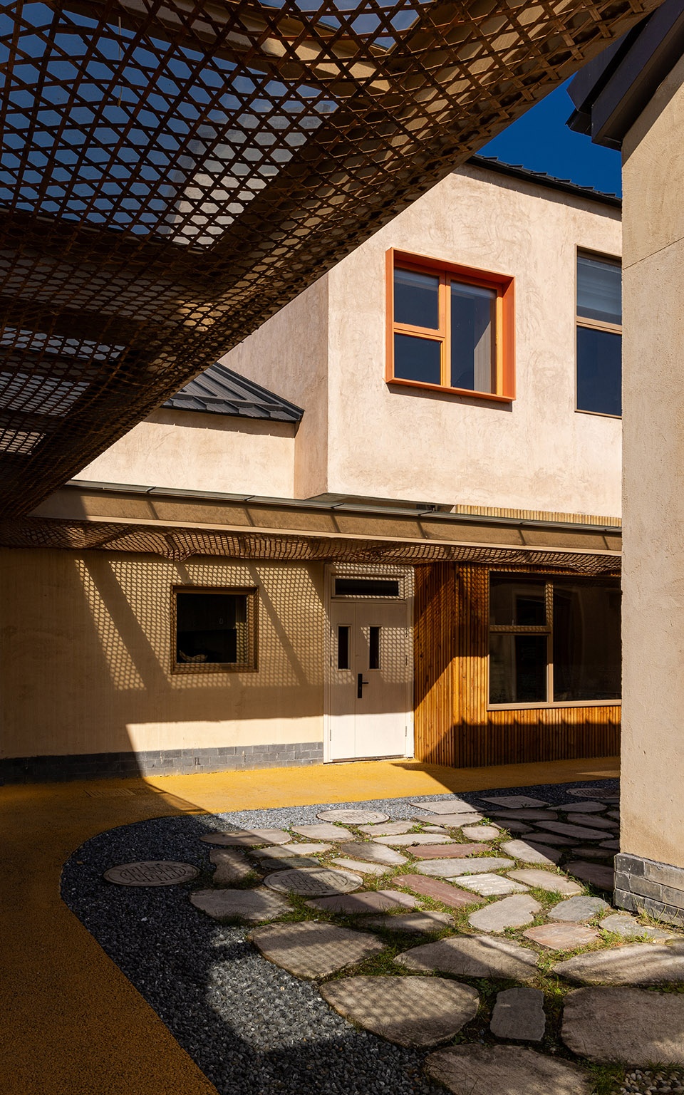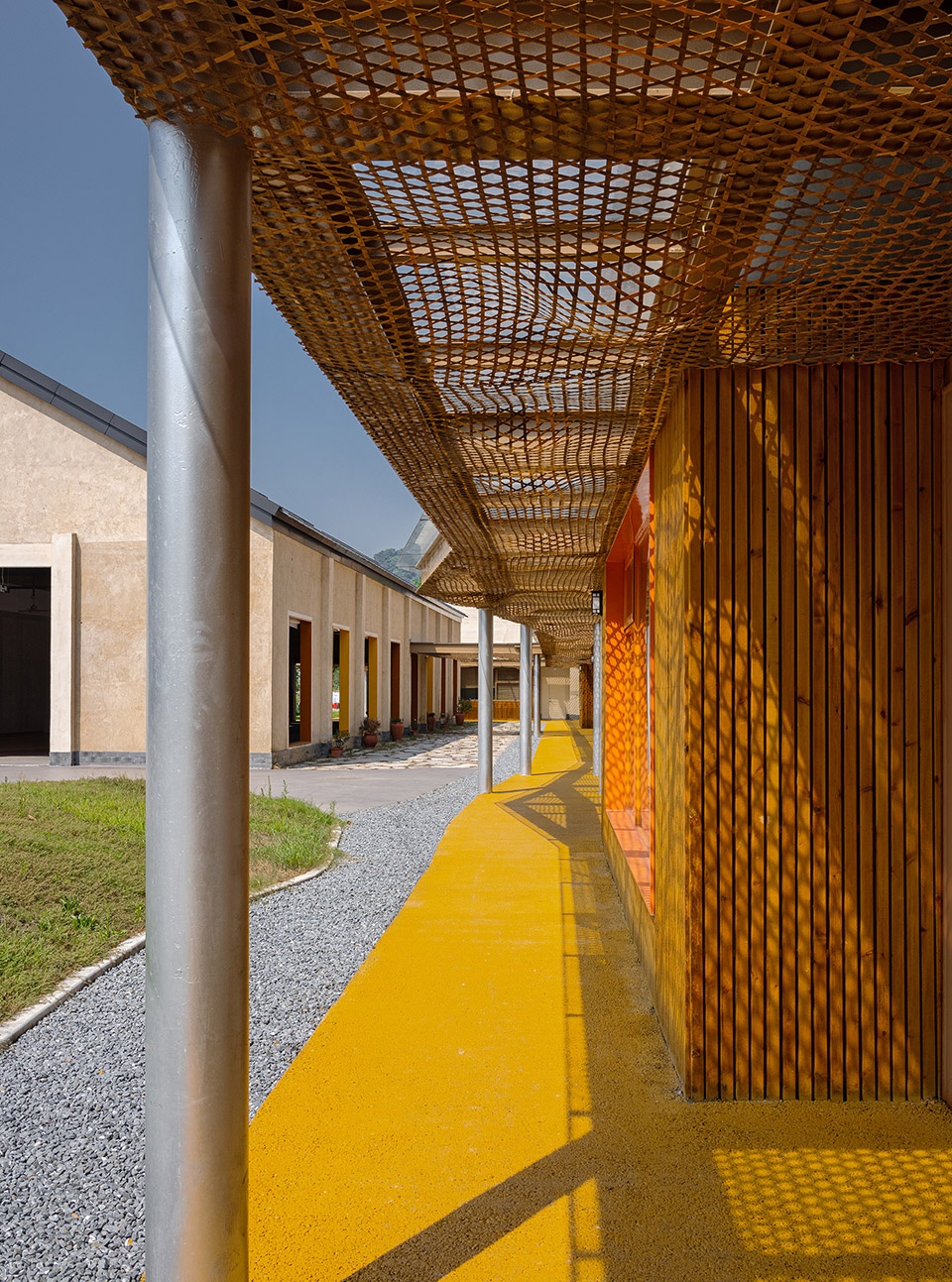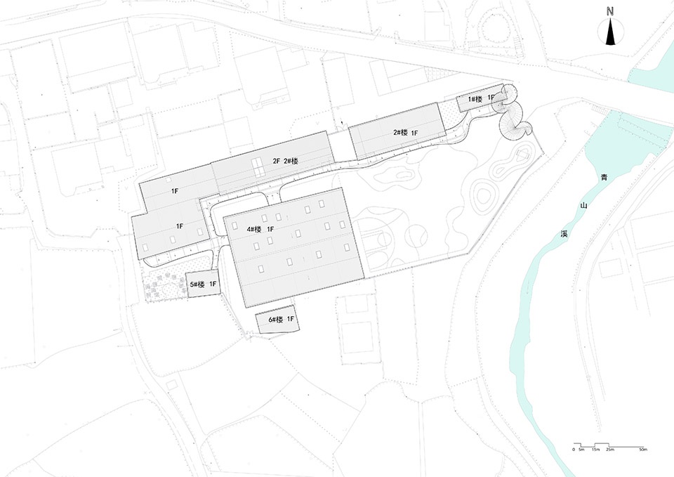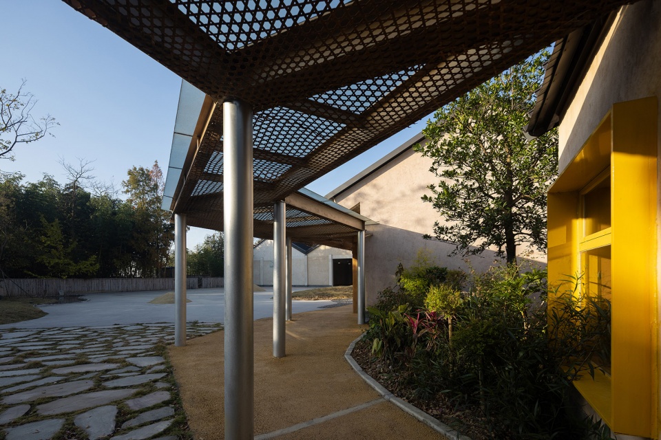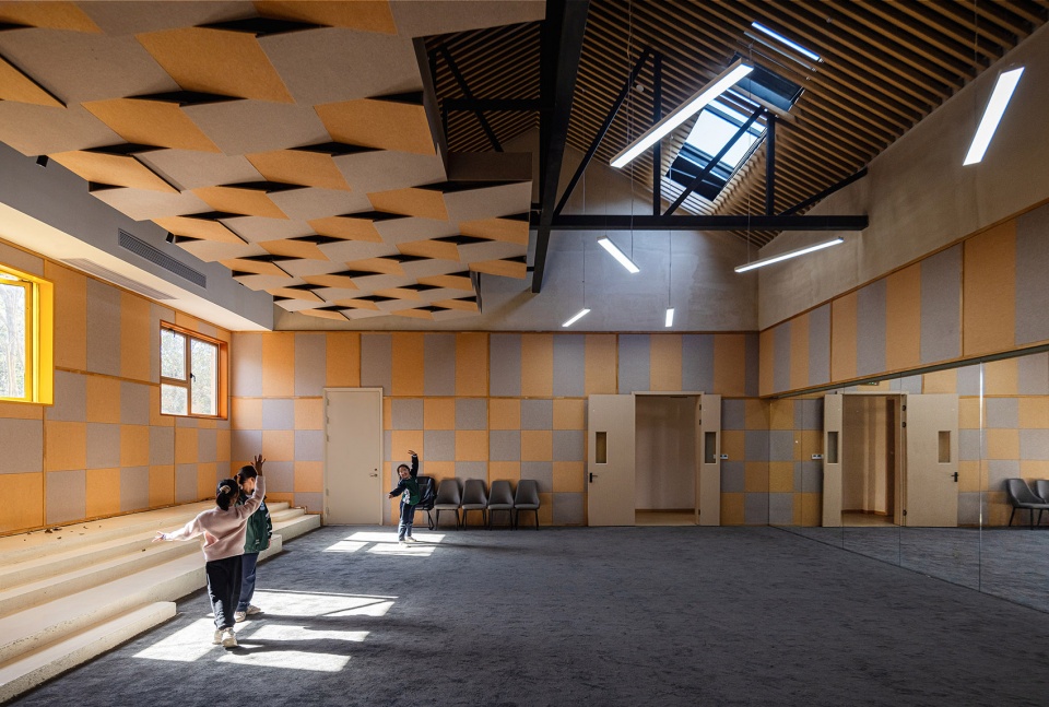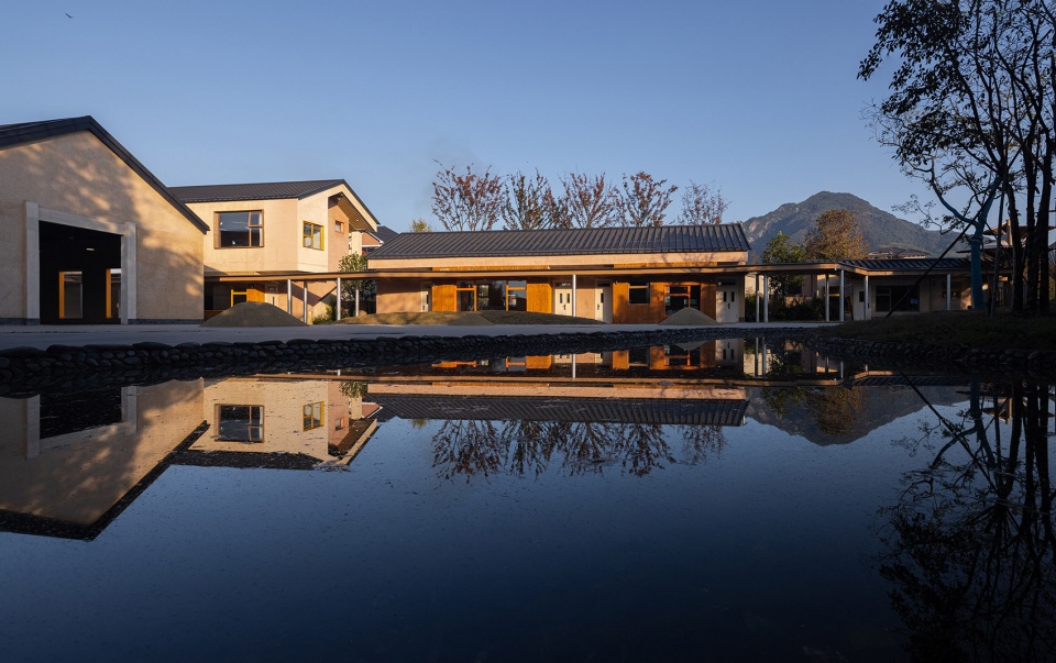 We respected the original layout and spatial logic of the former campus, and carried out a light-touch reconstruction on the existing site. By preserving the dual-pitched roofs and the original building massing, and introducing a modular layout connected by corridors, we created an open and flexible learning village. The architecture is no longer a set of enclosed classrooms, but a series of learning nodes woven through fields, under trees, and along the stream. Here, learning no longer happens in a single “classroom,” but unfolds across a constellation of spaces—corridors, playgrounds, platforms, and courtyards. We hope that learning can grow like wild grass, naturally sprouting in every corner, forming genuine connections with the environment, the seasons, and the people.