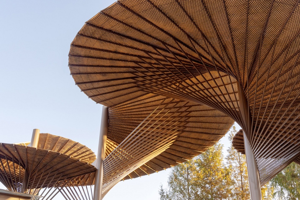 ▼传统油纸伞转化的校门,School Gate Inspired by Traditional Oil-Paper Umbrella
