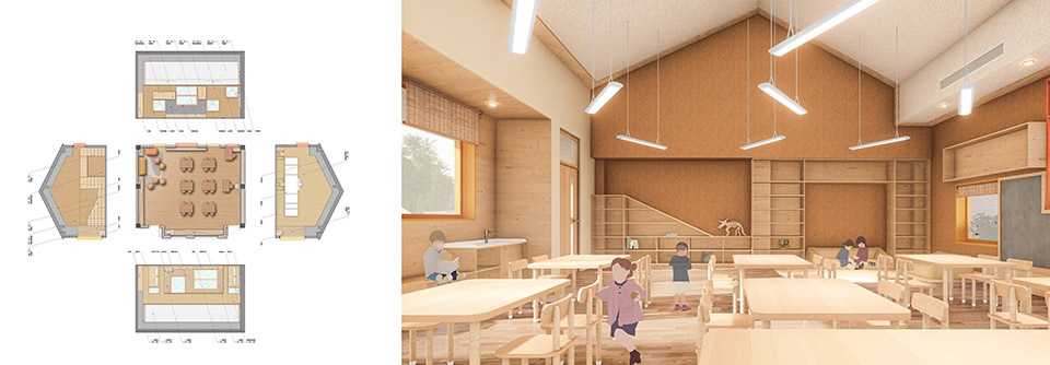 The school entrance space draws inspiration from traditional oil-paper umbrellas and integrates modern parametric design methods, creating a “third place” that connects the school with the community. The corridors and canopies are designed not only for climatic adaptability but also as dynamic learning environments where children can move, gather, and explore. The construction process was more than just a physical operation—it became a platform for community participation and knowledge exchange. Through this warm and participatory approach to space-making, the design team aims for the architecture itself to become part of cultural regeneration and the reconstruction of rural social systems.
