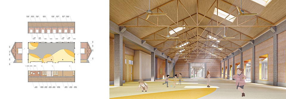 ▼风雨操场五面图,Covered Playground Five-View Drawing