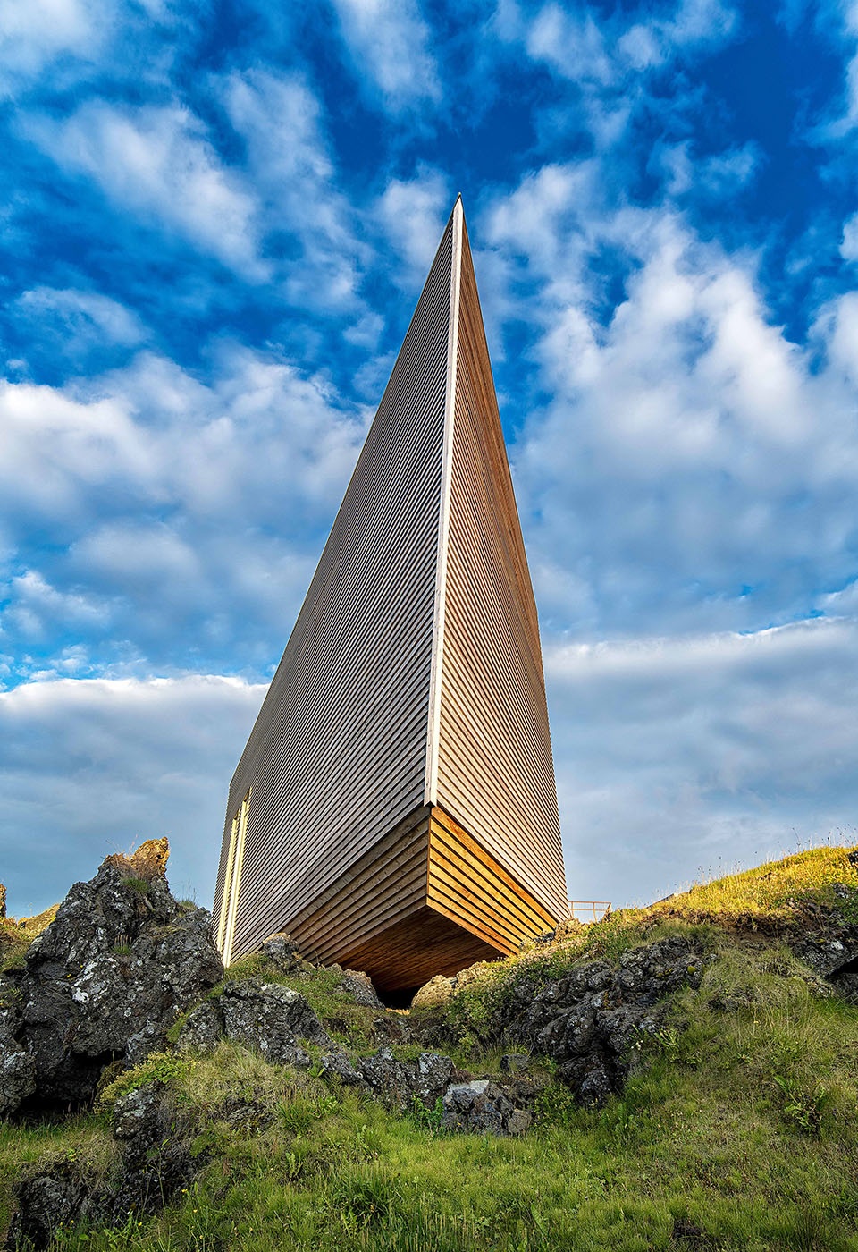 建筑的中轴设有贯通的步道,使游客能够从一侧穿行至另一侧。两侧的楼梯则通向屋顶观景平台,俯瞰Snæfellsjökull冰川与当地的Hellissandur村。