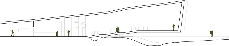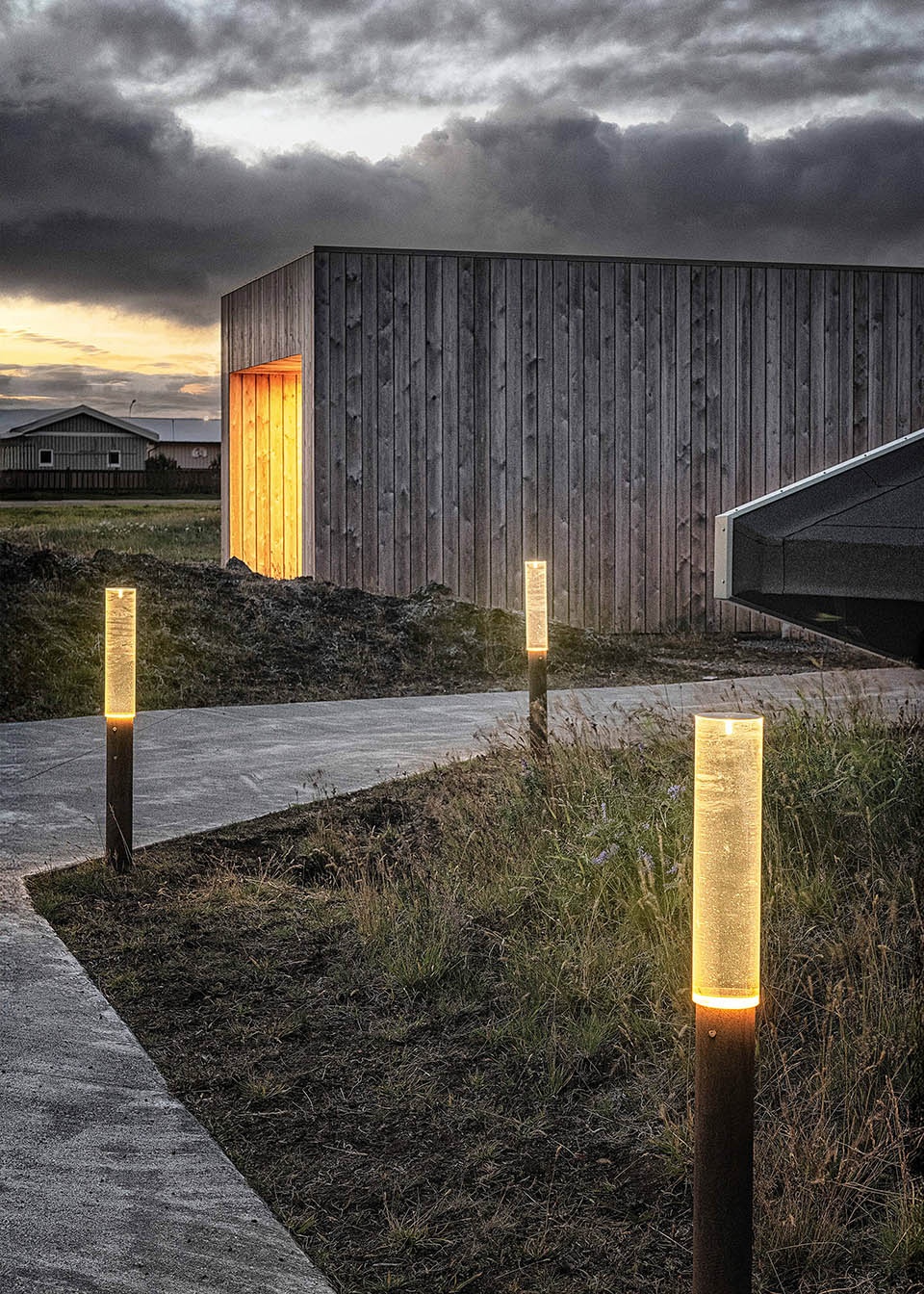 Glacial Cape does not dominate its surroundings, but rather it merges into them. Its presence is easily visible from the main road, but from there no one perceives it fully. Immediately upon arrival the tone is set for different nuances that the building creates in interaction with nature. The trail, from the parking lot to the building, splits a sea of lava around the Cape so the line of sight is limited at first. As one gets closer, the Cape gradually reveals itself and its immediate surroundings. There, a melting pot for cultural, educational, and recreational activities becomes revealed – a melting pot which the Cape is intended to foster. Out of the lava sea, the route continues up the Cape, where unobstructed views extend to the glacier, land, and sea.