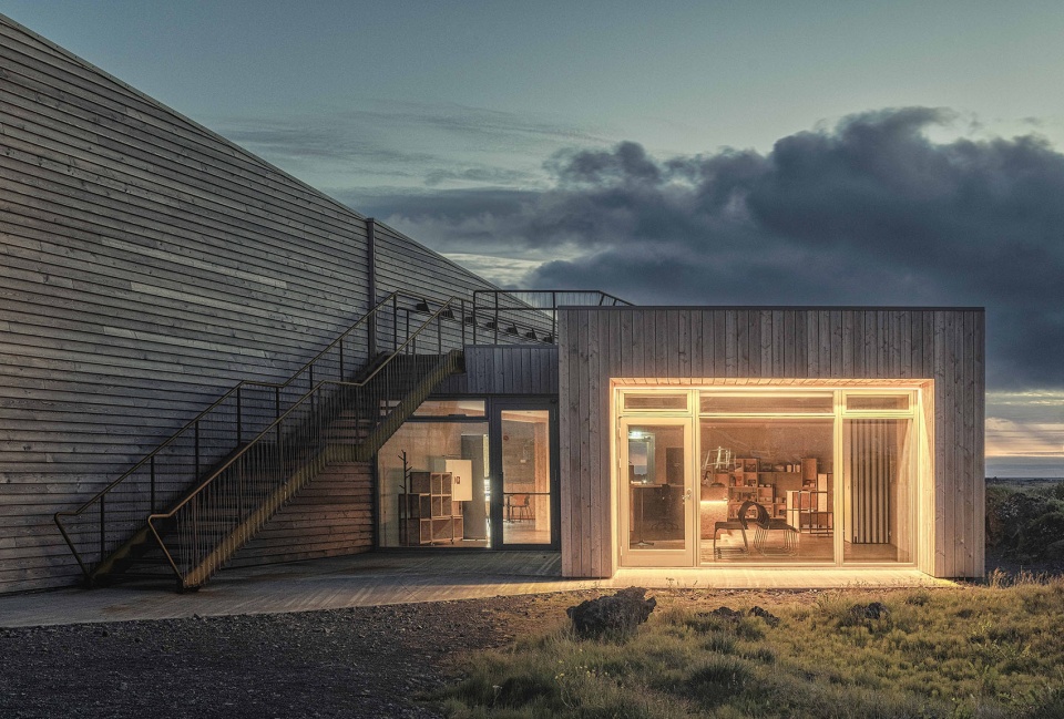 One of the main goals in designing the building at this location was that it could be constructed with as little disturbance as possible, and that it would feel as though it had landed there fully formed, without any disruption. To achieve this, the design included a part of the building that hovers over the edge of the lava field. This required a new approach to building design in an earthquake-prone area, which places high demands on the structural system — especially when dealing with cantilevered structures, which are very challenging.