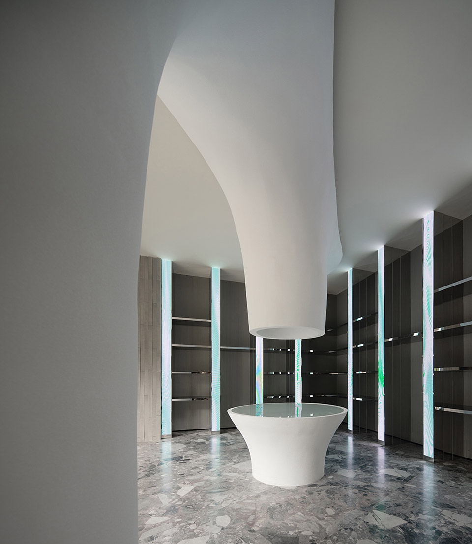 We created a series of dynamic visuals for the installation, flowing through embedded digital screens like an energy source. With a rhythm that is both vivid and restrained, it guides the emotional tone of the space and becomes the very first touch point within the brand’s context.