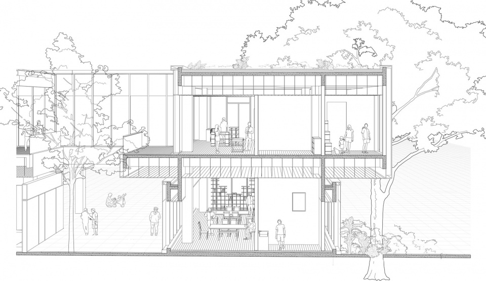 Traditional community facilities are either “inward-facing” community centers or “outward-facing” urban public space. Our approach was to explore an “inside-out” strategy