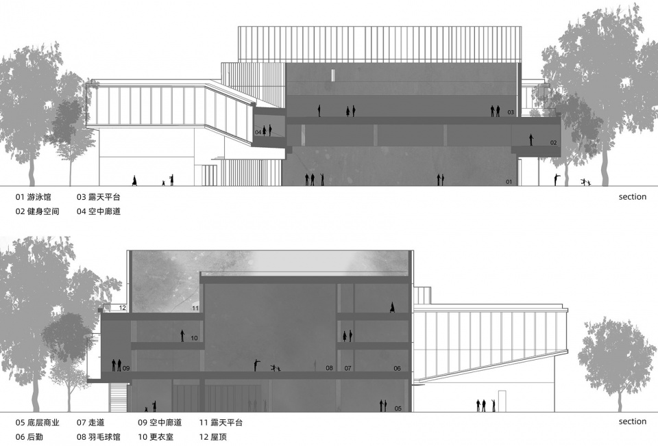 ▼剖面-综合楼 ,Sections of Sprots Complex