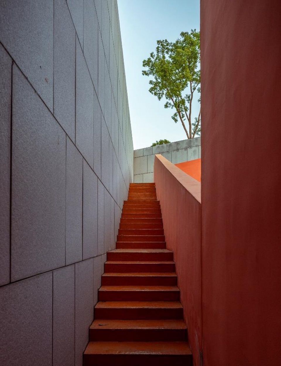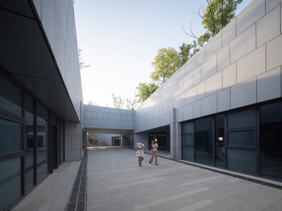 Taking into account the characteristics of the terrain and functional requirements, the terrain of the activity area is reshaped. Through the overall creation of a three-dimensional space guided by the flow lines, combined with sunken passages and triangular courtyards, with excellent natural ventilation and lighting, the physical performance of the underground space is optimized, and the quality of people’s spatial perception is enhanced. On the basis of being environmentally friendly, it provides a foundation for minimizing the energy consumption of the underground public space of public facilities for operation.