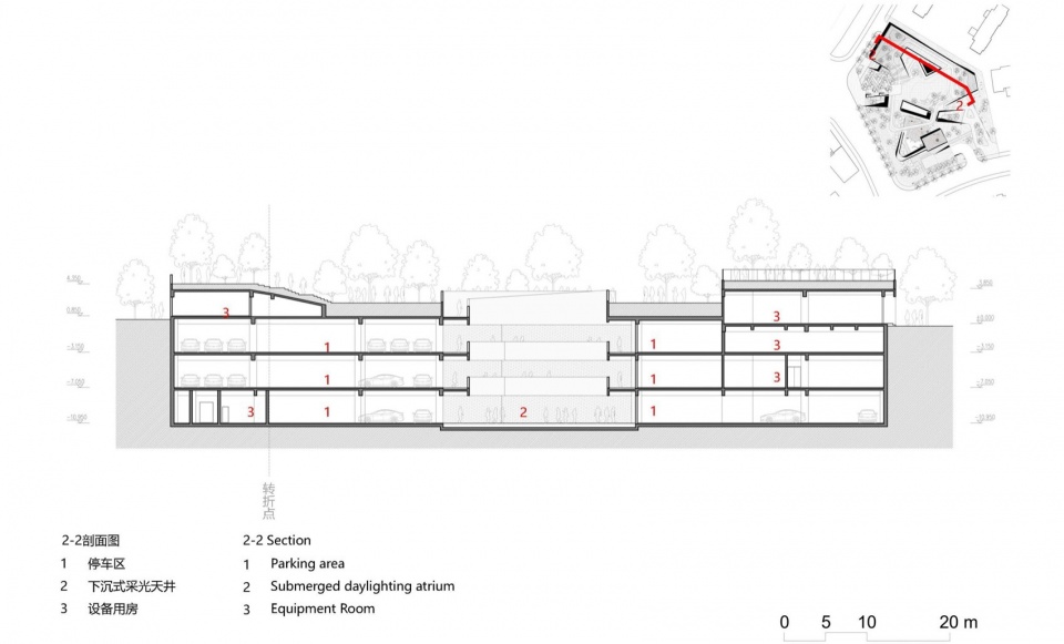 ▼下沉式采光天井通道,Submerged daylighting atrium
