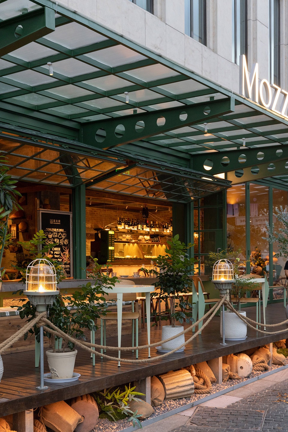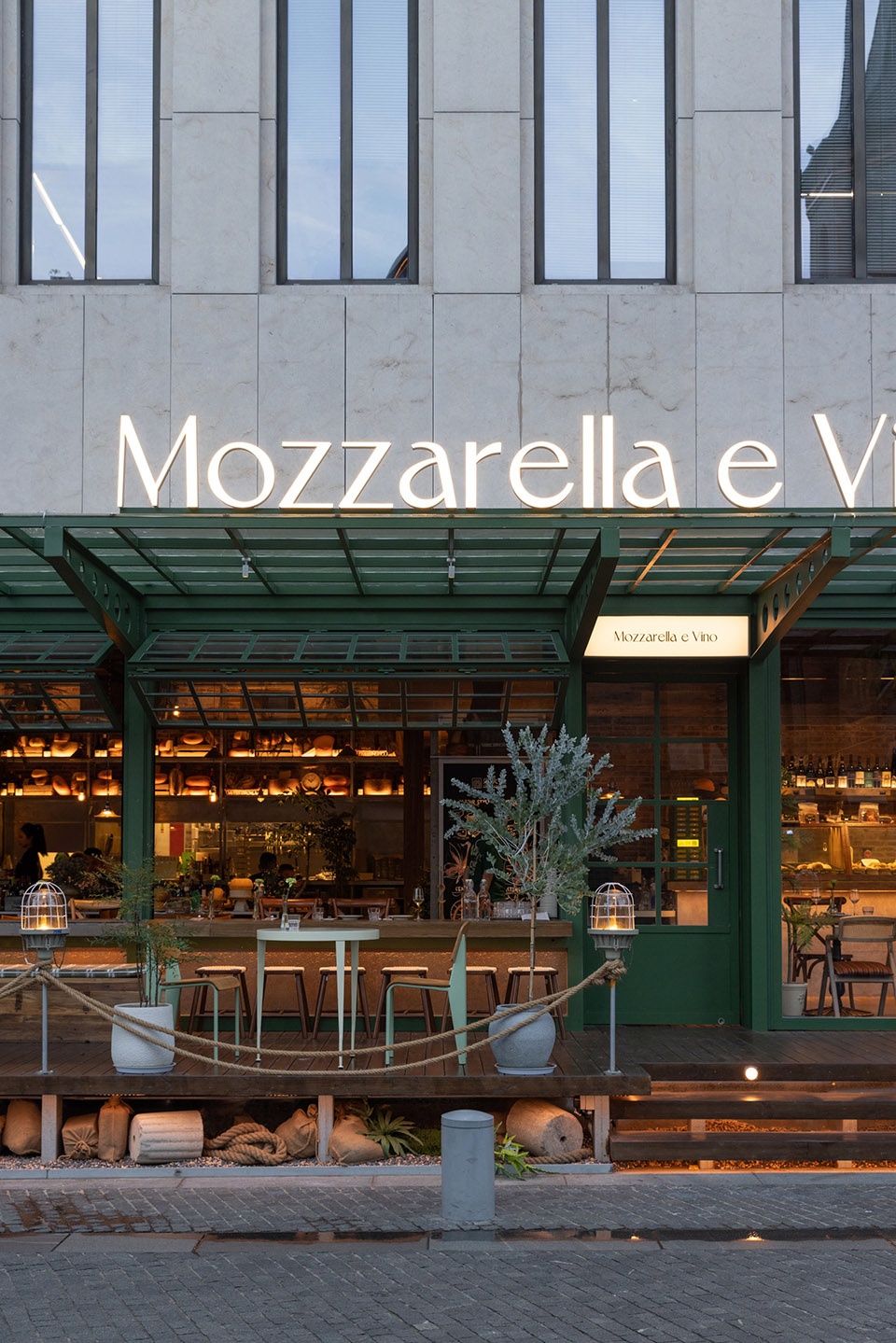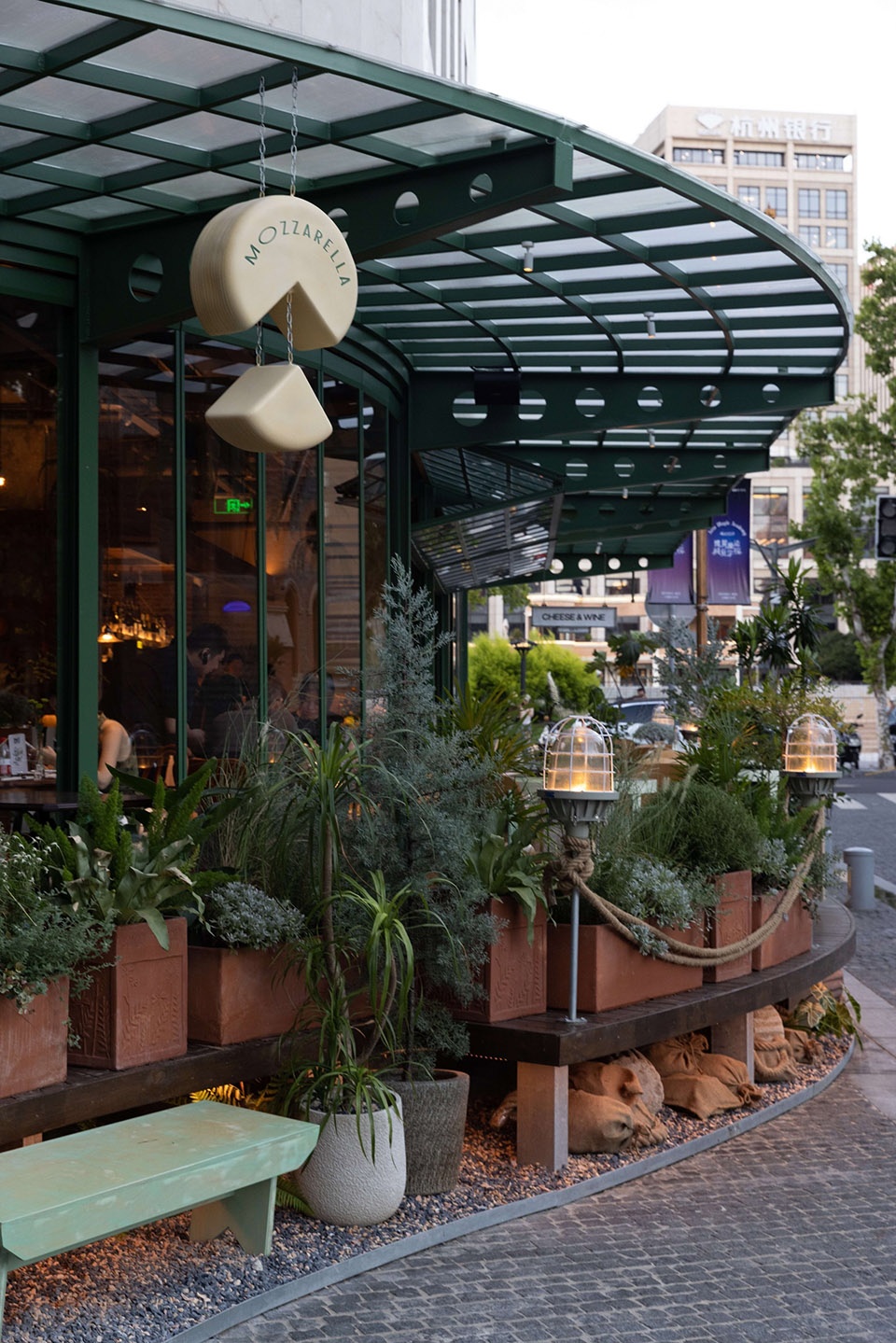 Among the century-old Art Deco-style architectural complex, the Mozzarella e Vino Rockbund Source store in Shanghai, located at the confluence of the Huangpu River and the Suzhou River, is a European-style Bistro that initiates a romantic narrative of cheese and wine on the street.