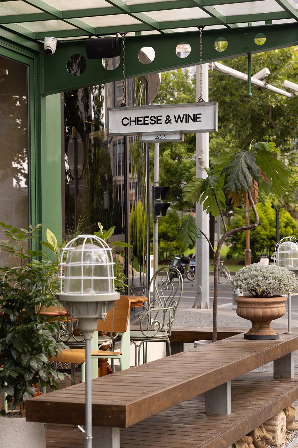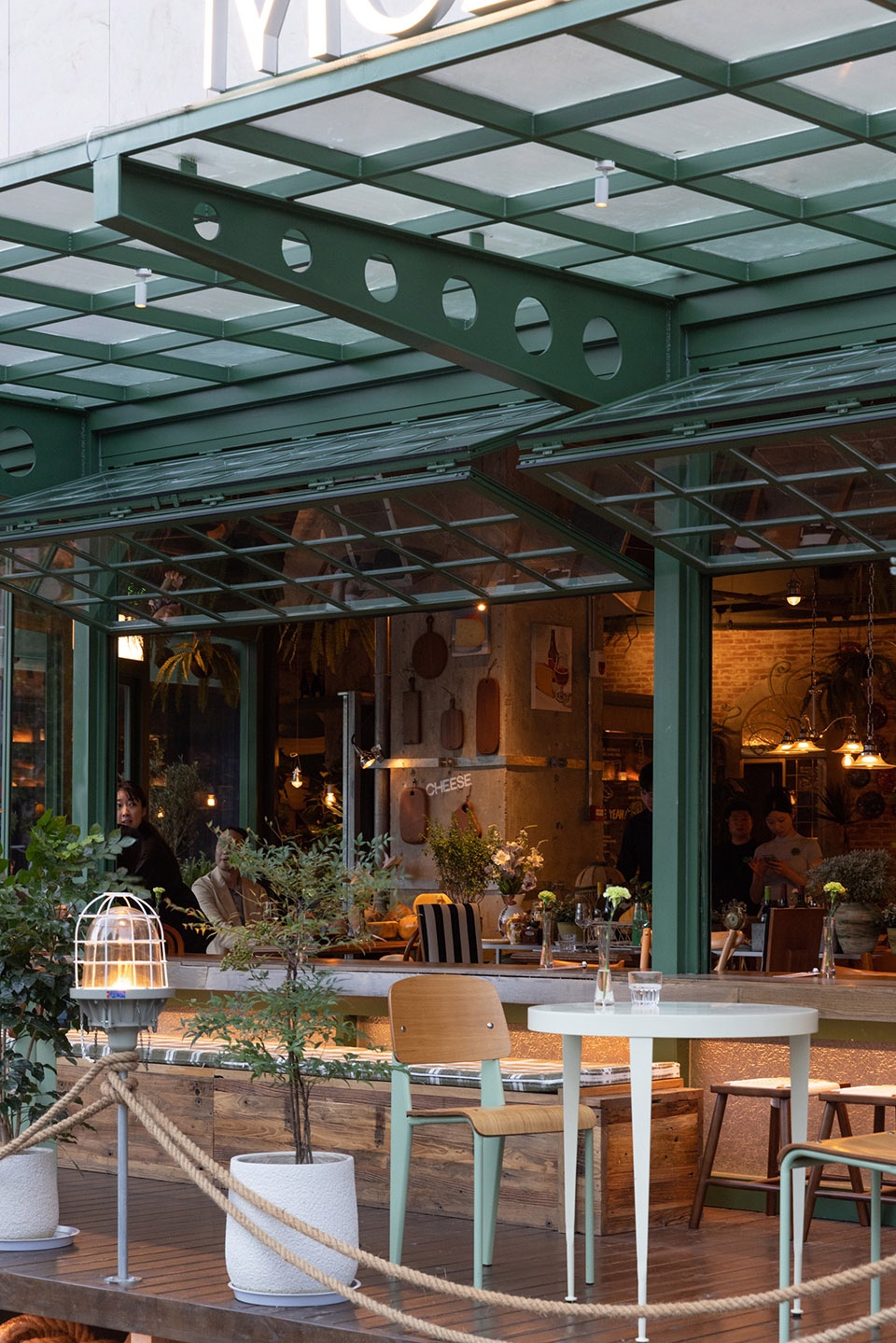 We disassembled and reorganized the memories of these century-old docks and integrated them into the outdoor storefront. When you walk naturally from the street into the store, it’s like stepping onto a dock brimming with cheese and wine, where the anticipation of crossing the ocean lands. The lamp posts in the distance, like signal lights at sea, guide the guests to arrive.
