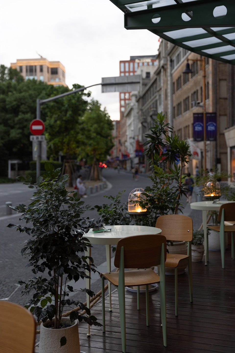 适宽的街道与沿街的外摆、让行人总能在步移间获得舒适的尺度感知,松弛自如。