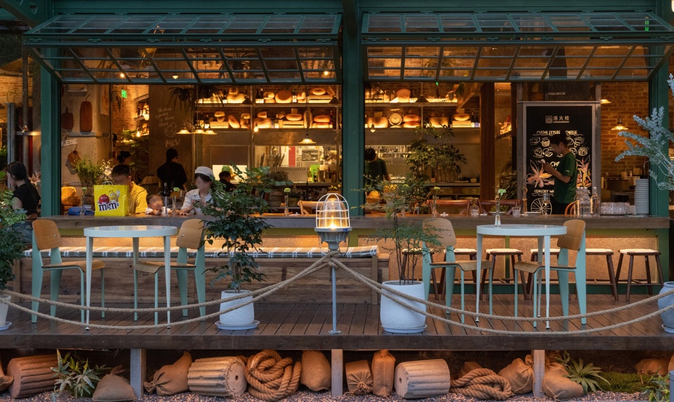 The stacked cargo boxes on the deck, the marks left by the friction between the hemp ropes and the pulleys, all serve as the inspiration for this green-themed Western restaurant, with the regional culture and brand image interlinked.