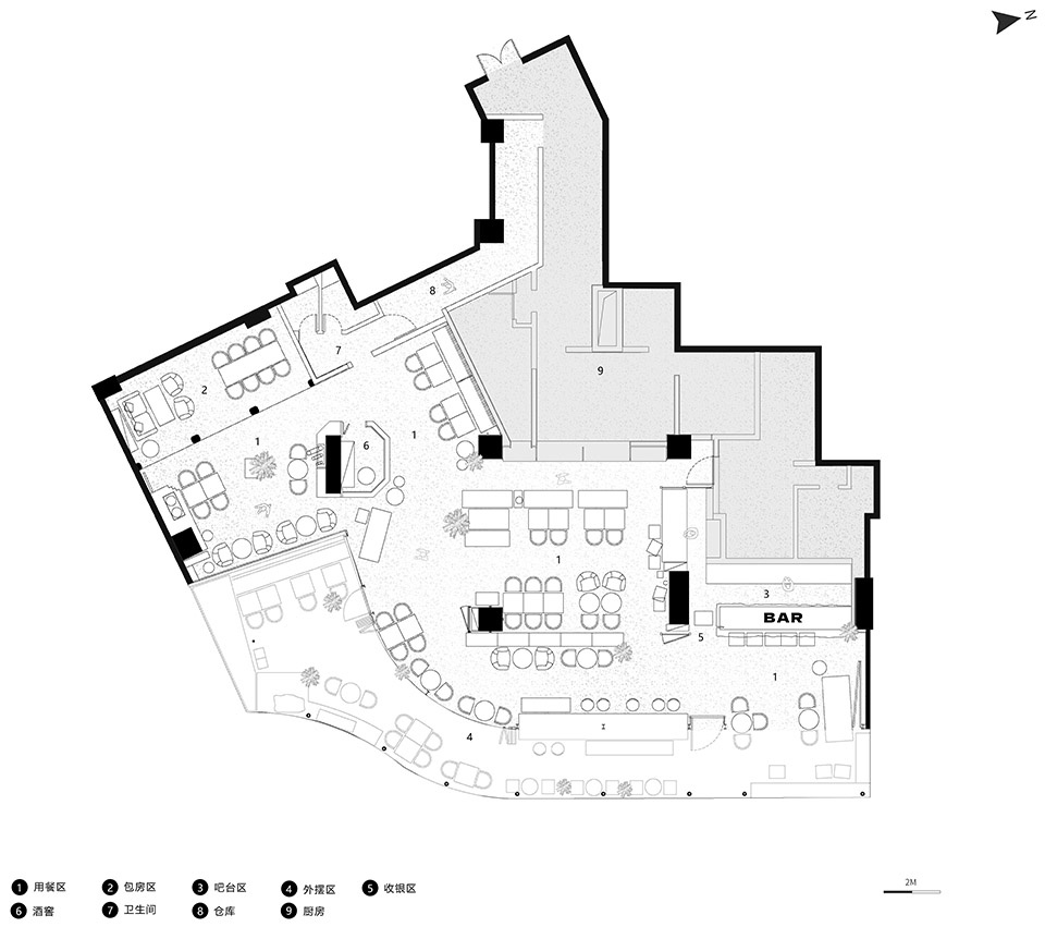 ▼以座位组团的形式来限定空间,The space is defined by seating groups